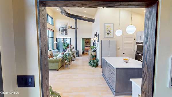 Est $2,472/moPerched on a private enclave, this architecturally designed 3-bedroom, 2-bath residence is a true treasure within nature, offering the best views in the region. The home is designed for indoor/outdoor living, Floor-to-ceiling windows flood the open-concept living spaces with natural light, ensuring that the breathtaking vistas are a focal point from every room. Detached workshop behind home is 50 x 23