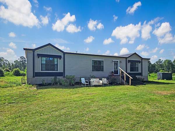 24 Acres in Magnolia Springs with an immaculate 2023 farmhouse-style mobile home! This beautiful 3 bed, 2 bath home features a spacious open-concept layout with a huge kitchen, dining, and living area--perfect for entertaining. The primary suite includes a walk-in closet and a bathroom to die for with a soaking tub, separate shower, and gorgeous picture windows. A creek borders part of the land, and a small pond has been started for livestock. The property offers partial fencing, a chicken coop, hog pen, 15x30 shed, and fencing materials that stay. Mostly cleared about 6 years ago with seasonal grass planted. Ag exempt for lower taxes! All appliances--including washer and dryer--stay with an acceptable offer. Peaceful country setting with room to grow--bring your animals, your dreams, and make it your own. The hard work has already been done--come enjoy the beauty and possibilities this unique property has to offer!
