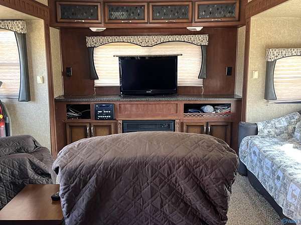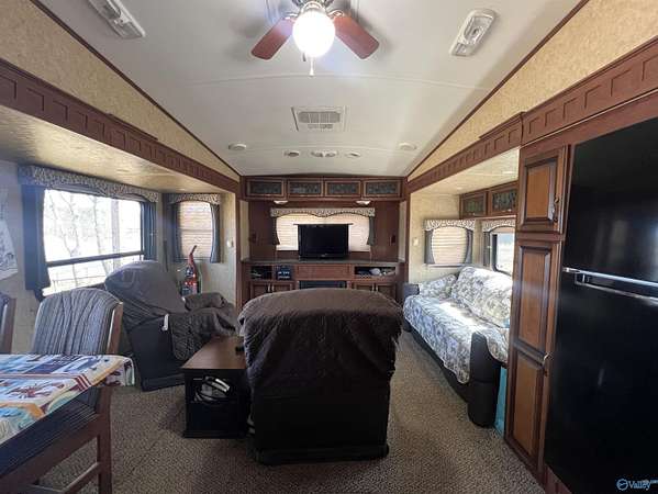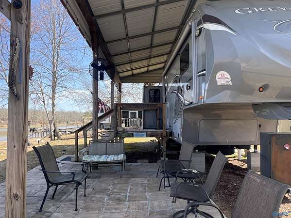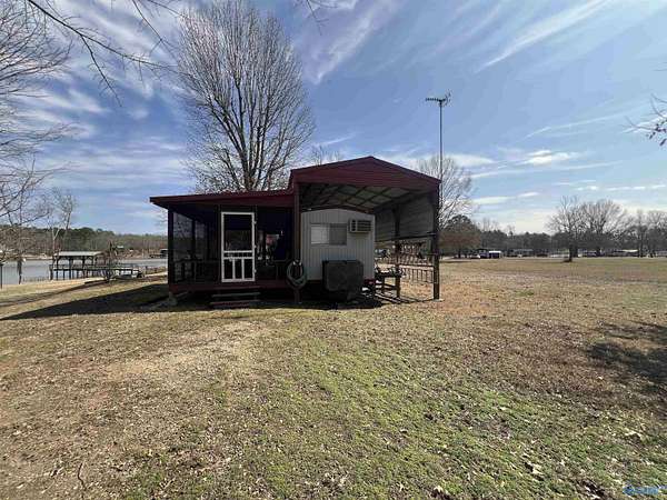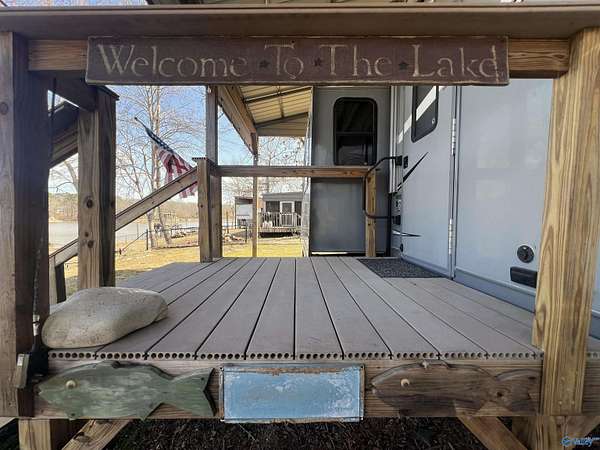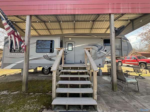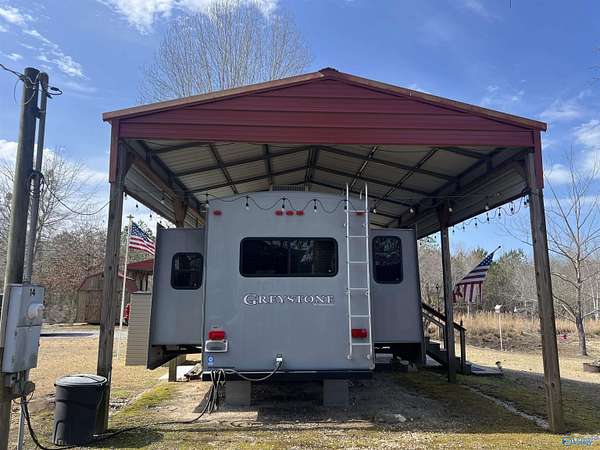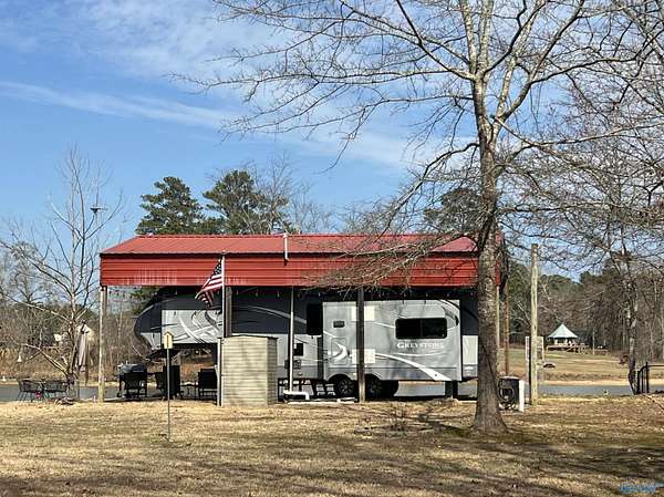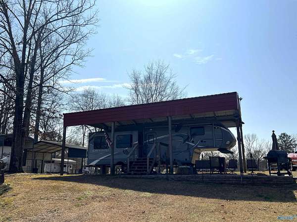 Enjoy a quiet getaway w/ this exceptional waterfront deeded RV lot on beautiful Weiss Lake! Spanning nearly an acre, property boasts approximately 400 ft of shoreline w/ stunning views & plenty of space to relax & enjoy the water. Comes fully equipped with a 2012 34-foot Greystone 5th wheel camper that sleeps 4, along w/ a 38-foot camper cover for added protection. A thoughtfully converted 8 x 28 building provides a cozy bedroom & full bath, complemented by a spacious 12' x 28' screened porch-perfect for enjoying peaceful mornings or evenings overlooking the lake. Includes private dock & 10 x 10 storage bldg. Don't miss this opportunity
