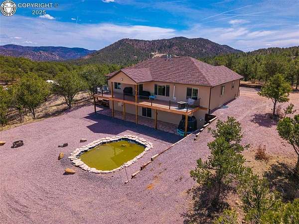 Welcome to your new home at 400 Dave Drive! This stunning property offers a spacious 3,564 sq ft of living space with five bedrooms, three full bathrooms, and a large open floor plan, ideal for both comfort and privacy. This modern rustic retreat was built in 2022 and offers a variety of new amenities, including an on demand water heater, water softener system, backup generator system ensuring uninterrupted comfort and convenience, and wifi enabled appliances. An inviting basement adds additional living space, highlighting the bonus exercise room and the large secondary living room. The large, oversized two car garage offers substantial storage and workspace. The property features a well that is drilled approximately 500 feet deep and runs at five gallons per minute. Resting on 35.22 acres of generous mountain land, this home provides ample outdoor space perfect for enjoying the beautiful Colorado scenery. Nestled in the trees to the East you will find a large outbuilding with electricity, water, covered hay storage, and a spacious fenced meadow, perfect for equestrian lovers or those seeking extra storage solutions. Nearby BLM land presents endless outdoor activities right at your doorstep, from hiking and horseback riding, to biking and ATV's, to wildlife viewing and hunting. Come and see what possibilities await you, just 30 minutes West of Canon City! Owner is a licensed realtor and the listing agent