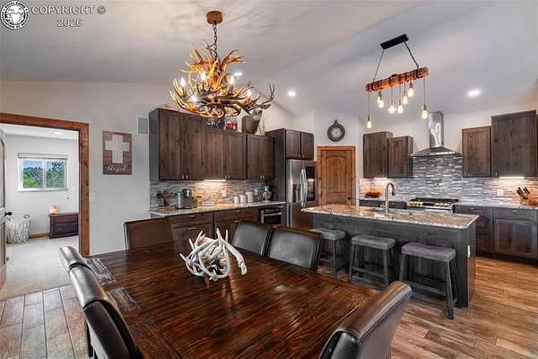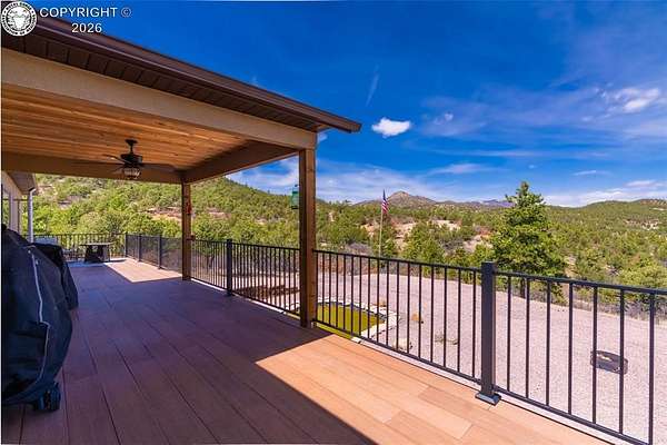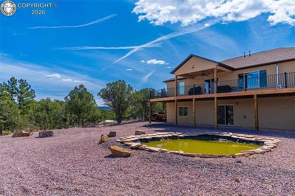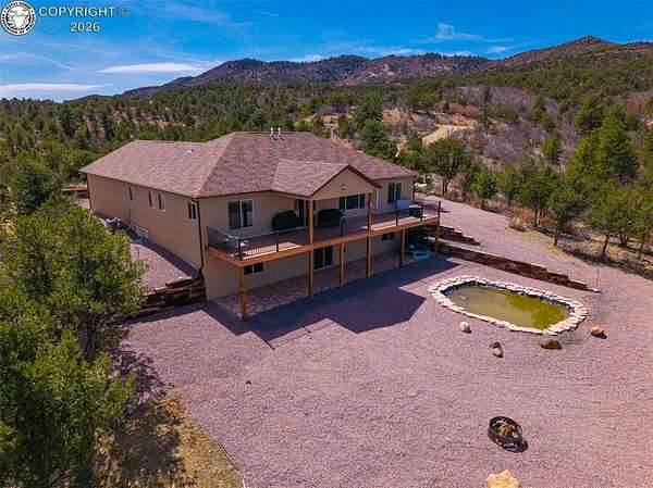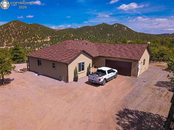 Welcome to 400 Dave Drive, a modern rustic home built in 2022 and set on 35.22 acres of Colorado mountain land. This spacious residence offers 3,564 sq ft, five bedrooms, three full bathrooms, and an open floor plan designed for comfort and privacy. Features include WiFi-enabled appliances, an on-demand water heater, water softener system, and a backup generator for uninterrupted living. The finished basement adds valuable space with a large secondary living room and bonus exercise room. An oversized two-car garage provides ample storage and workspace. The property is served by a 500-foot well producing approximately 5 GPM. A large outbuilding with electricity, water, covered storage, and a fenced meadow sits among the trees-ideal for equestrian use, storage, or hobbies. Nearby BLM land offers easy access to hiking, horseback riding, biking, ATV riding, hunting, and wildlife viewing. Located just 30 minutes west of Canon City. Owner is a Colorado Licensed Real Estate Agent and the Listing Agent of this property.
