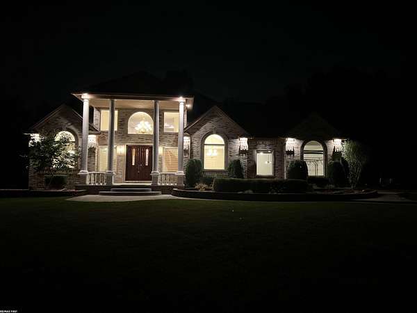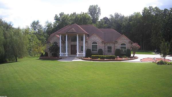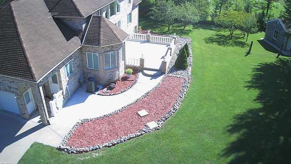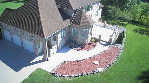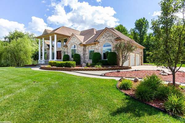 Price Improvement. Welcome to paradise and experience the serenity of "up north" living with the convenience of nearby city amenities in this breathtaking 3,318 square foot custom built estate. Tucked away on a peaceful 1.78 acre lot surrounded by mature trees and scenic views, this luxurious retreat offers the perfect blend of elegance, comfort, and modern design. You will be welcomed with a grand 2 story foyer featuring double staircases leading to the bridge over looking the great room. Step inside to discover expansive living spaces, soaring ceilings, and a seamless open-concept layout. The heart of the home is a stunning chef’s kitchen featuring an island, custom octagon nook, perfect for everyday living and entertaining alike. The great room is anchored by a corner gas fireplace, soaring 2 step ceiling, recess lighting and overlooks the beautiful landscape. The backyard terrace provides a tranquil spot to unwind or host guests, while the finished basement adds over 1,600 square feet of versatile living space. 2 primary suites to choose from is a true sanctuary, complete with a large walk-in closet and a luxurious remodeled bathroom featuring a shower and corner soaking tub. Bonus outbuillding 36 x 20 a section is set up as a meat smoker and extra storage/garage. Plus much much more!!