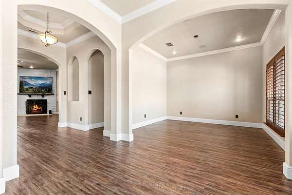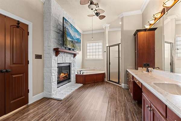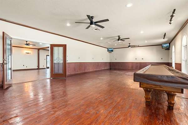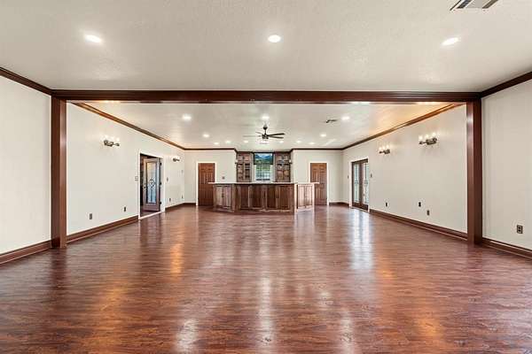 Unique Poolside Luxury Escape with 3 Private Residences! Discover your own gated oasis spanning an entire city block--a truly unique, resort style escape. Set behind a beautifully crafted stone and wood privacy fence, this estate boasts six secured entry points from four different streets, ensuring both privacy and convenience. A grand lighted circle drive leads you to three private residences, all centered around an expansive, amenity rich courtyard. The centerpiece of the estate is the heated saltwater pool and hot tub, surrounded by 1,400 sq. ft. of covered pavilion space. This outdoor sanctuary is fully equipped with an outdoor kitchen, pantry, full bath, washer-dryer hookup, and a serving bar, perfect for both intimate gatherings and large-scale events. The main residence offers 3,646 sq. ft. of luxurious living space, featuring 5 spacious bedrooms, 3 full bathrooms, and a 4-car attached garage. The gourmet kitchen is outfitted with double built-in fridges, 2 wine fridges, a pot filler, island with granite countertops, and a walk-in pantry. The primary suite is an indulgent retreat with a double-sided fireplace, soaking tub, and a queen-sized walk-in closet. The second residence is a self-contained 1,158 sq. ft. home with 3 bedrooms, 2 baths, and a 2-car garage, offering both a private entrance off Marrion Street and direct access to the central courtyard. The Event House, at 2,308 sq. ft., is designed for entertaining, featuring a wine cellar, a fully-equipped kitchen, built-in shelving, and half bath with W&D connections. Unbeatable location as DFW and Waco are less than an hour away. Escape the constraints of an HOA and own your own private resort, where luxury, privacy, and convenience converge.