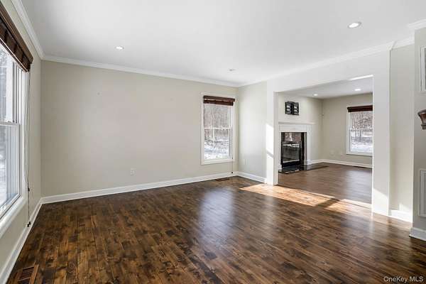 Space to grow, gather, and truly make this home your own. This well-maintained 4-5 bedroom, 3 full bath residence is set on a generous 1.8-acre lot on a private road, located within the Eastport South Manor School District. The main level offers a versatile and inviting layout featuring formal living and dining rooms, with the dining room easily serving as an optional 5th bedroom, complemented by a full bath on the first floor, ideal for guests or extended family. Wood flooring runs throughout the main living areas, while the kitchen and great room feature tile flooring. The kitchen is thoughtfully designed with white shaker cabinets, Corian countertops, a glass tile backsplash, stainless steel appliances, and a 5-burner stove, opening seamlessly to a spacious great room with a fireplace, perfect for everyday living and entertaining. The second level includes four generously sized bedrooms, highlighted by a sundrenched primary bedroom with vaulted ceilings, along with laminate flooring and ceiling fans in all four bedrooms, offering comfortable and functional living space for the entire household. Additional highlights include a full basement (partially finished), 2-car garage with electric openers, dedicated laundry closet, 200-amp electric, CAC, front and rear sprinkler system, extended driveway, charming granny porch, and a brick patio ideal for outdoor enjoyment. Recent upgrades add peace of mind, including conversion to natural gas (2023), new burner (2021), new water heater (2021), and a Nest thermostat. Conveniently located near the Long Island Expressway and Sunrise Highway, this home offers both privacy and accessibility. Call today and be in before Spring!