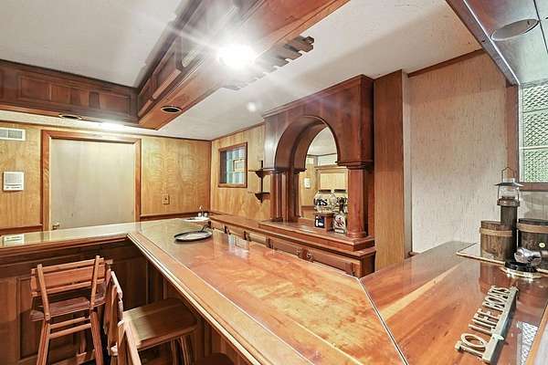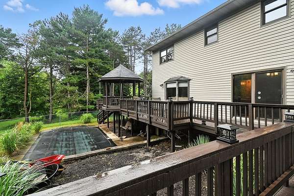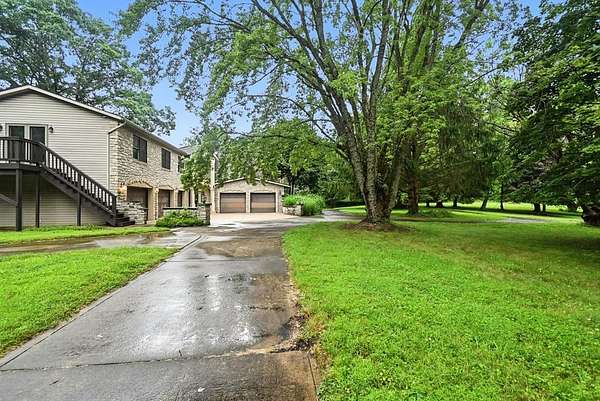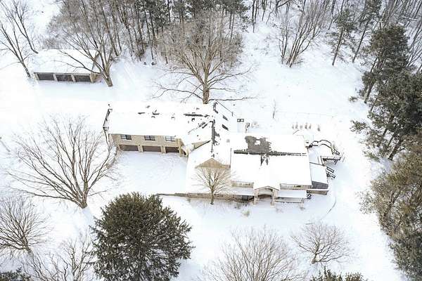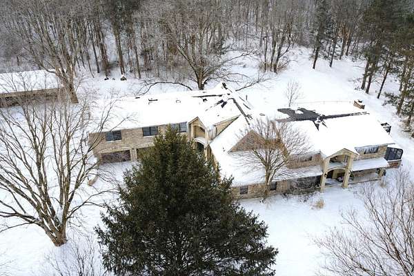 Lifestyle change motivates the sale of this exceptional private retreat just minutes from Snow Trails and I-71. Set on 8 scenic acres, this one-of-a-kind 5-bedroom, 3.5-bath home offers over 5,000 sq ft of expansive living space filled with custom woodwork and architectural character. The impressive great room anchors the home, while two oversized primary suites provide incredible flexibility, including a 22x44 wing ideal for multigenerational living or extended stays. Entertain with ease in the sunroom, full bar area, or walk-out lower level leading to a serene inground pool surrounded by nature. Enjoy outdoor living from the deck or gazebo, and take advantage of the 24x42 pole barn and 8-car garage for vehicles, storage, or hobbies. Natural gas heating, a whole-house generator, and two new central air units added in 2025 offer comfort and peace of mind. A rare blend of privacy, space, and lifestyle in a picturesque setting.