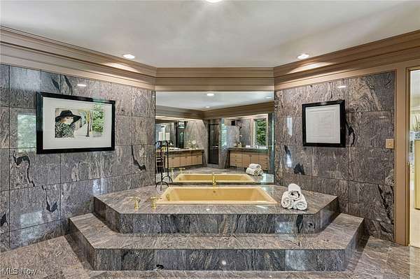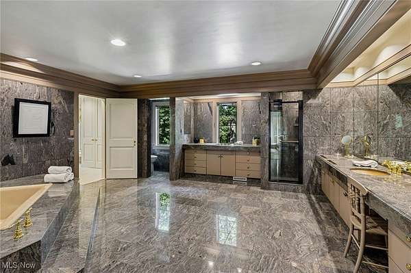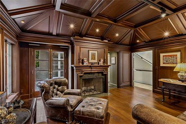 - Bookcases, Built In Features, Chandelier, Coffered Ceilings, Double Vanity, Eat In Kitchen, Elevator, Entrance Foyer, High Ceilings, Kitchen Island, Open Floorplan, Pantry, Primary Downstairs, Walk In Closets