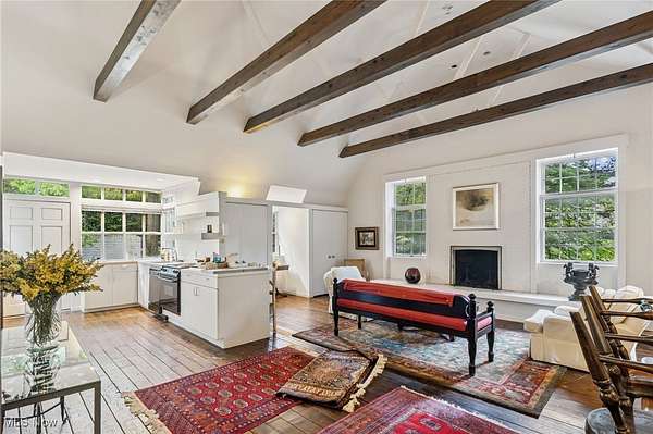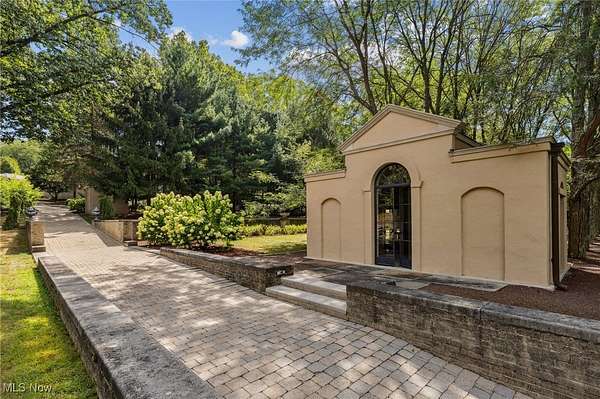 Behind a private gated entry, 400 Hunters Hollow unfolds across more than 7 acres of manicured grounds-an extraordinary estate blending Neoclassical grandeur with French Provincial elegance. A sweeping drive leads to a circular motor court framed by lush gardens and timeless brick facades, setting the stage for over 8,000 square feet of refined living. The dramatic great room features soaring ceilings, exposed beams, Juliet balconies, and walls of windows showcasing breathtaking views of the grounds. Five fireplaces warm the interiors, while an elevator provides seamless access to every level. Highlights include a richly paneled library, a collector's wine cellar, a Ralph Lauren-inspired suite, and a chef's kitchen with coffered ceilings, expansive counters, and French doors opening to the terraces. A butler's pantry with built-ins, warming tray, and dishwasher enhances the home's entertaining capabilities. The owner's suite is a retreat unto itself, occupying its own wing of the residence. It offers a fireplace, an expansive walk-in closet with center island, a spa-inspired bath with jetted tub and separate shower, and a private balcony with sweeping views of the estate. Outdoors, the property is a living masterpiece: themed gardens, a tranquil pond, multiple greenhouses, and a resort-style pool surrounded by stone terraces and pergolas. Expansive patios and sun-filled garden rooms blur the lines between indoor and outdoor living. A 2,500-square-foot carriage house with its own gated drive offers exceptional guest accommodations or private retreat space. Five garage spaces provide ample room for collectors. Steeped in legacy, the estate has welcomed Tony Bennett, Tony Curtis, and Meryl Streep, and was even featured in Architectural Digest. For those who seek what cannot be recreated-and who long to live within nature's finest artistry-400 Hunters Hollow offers a magical, timeless opportunity for its next visionary owner.