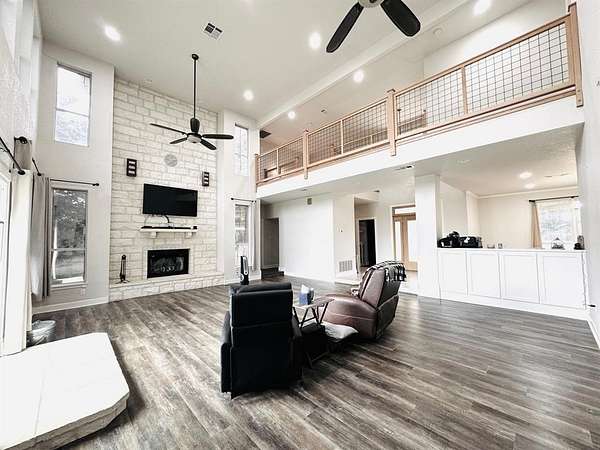 Ready to own your piece of Texas? This is it!! This impressive 4321 square foot two-story rock home rests on 57 acres of prime land, delivering a rare mix of luxury with peaceful country surroundings. The home offers four bedrooms with three full bathrooms plus a half bath. A spacious living area features soaring ceilings with a striking rock wood-burning fireplace, creating a warm inviting space. A flex room near the kitchen provides the perfect setting for a home office or formal dining.