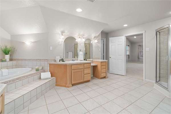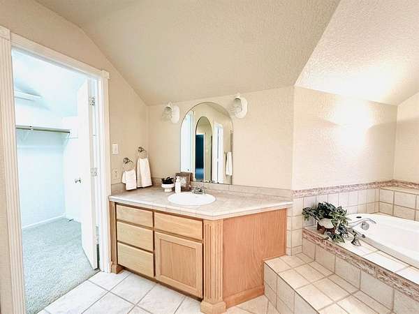 - Decorative Lighting, Kitchen Island, Pantry, Tile Counters, Walk-In Closet(s)