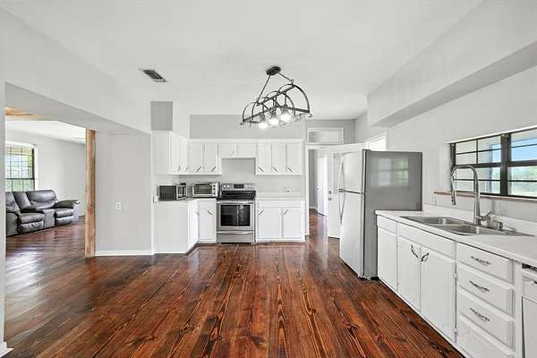 The home also features a dedicated utility room and an enclosed sunroom that's perfect for indoor gardening or creating your own greenhouse setup. Outside, there's a large pond, majority fenced perimeter of the property and a 60' diameter round pen ideal for training animals or creating a versatile hobby area. There's an additional smaller pen for chickens, rabbits, or other small animals.
