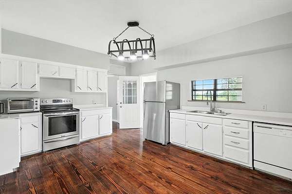 Country charm with city convenience! Spacious 3 bedroom, 1.5 bath home sits on 4.828 flat grassed acres, well maintained land in the city of Alba. Real hardwood floors throughout the first floor, wood accents, and natural lighting throughout. One of the downstairs bedrooms offers space and plumbing potential for an additional half bath or shower, while the upstairs bonus room has its own half bath and closet, could easily be converted into a private suite with the addition of a door.