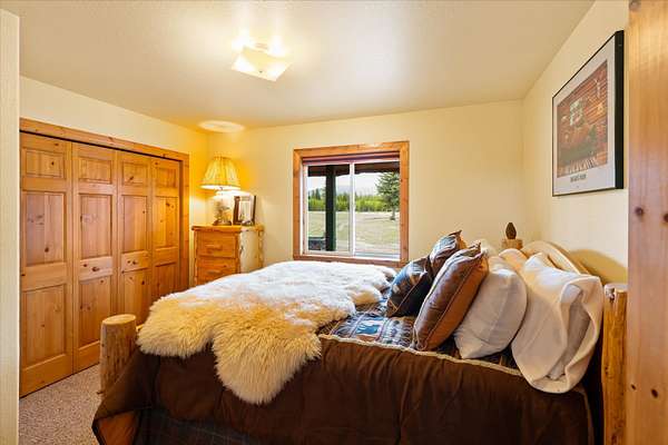 From the North Fork Rd, take a right onto Kintla Ranch Road. Where the road Y's stay right down a small hill. Driveway to the property is on the right through the log arch (property is gated & locked). Please do not drive onto property without permission.