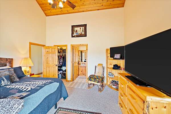 - Additional Living Quarters, Fireplace, Main Level Primary, Open Floorplan, Sauna, Vaulted Ceilings, Walk In Closets