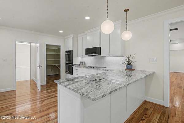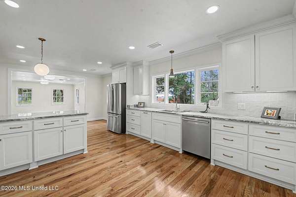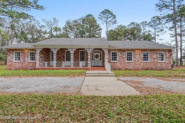 Stunning 1950's Traditional Ranch Home Beautifully Updated for Modern Living Welcome to this stunning 1950's traditional ranch home located at 400 Manila Street in Lucedale, offering 4 bedrooms, 2.5 baths and approximately 4,000 sq. ft. This one-of-a-kind property blends rich history, timeless craftsmanship, and thoughtful modern renovations. Originally built by Don Vincent Builders with craftsman Benny Wall, the home features exceptional construction including pier foundation with heartwood underpinnings, double subfloors, and double ceilings. The exterior showcases handmade reclaimed brick from the historic Varieties Theatre in New Orleans, a rare architectural feature that adds incredible character and history. The home sits graciously between two city streets on a 2.3 acre lot with live oak trees and in the heart of town. The property features a circle driveway, large front and back porches, bricked patio with planters, and a 2-car garage. The custom New Orleans wrought iron detailing on the porches adds even more charm. Inside, many original details have been carefully preserved including solid Mahogany paneled entrance with 12-paned window french doors, Spanish cedar flooring in the dining room, plaster walls, cedar-lined closets, original wood doors with glass knobs, pickled cypress paneling, and beautifully refinished quarter-sawn oak hardwood floors. The home has been extensively renovated with modern upgrades while maintaining its historic character. Updates include a new roof (2024), updated HVAC, new electrical and plumbing, renovated kitchen and bathrooms, custom cabinetry, new lighting, recessed lighting throughout, and solid red oak flooring in several living areas. The updated kitchen features custom cabinetry, a peninsula with seating, under-cabinet lighting, and stainless appliances, opening into spacious living and dining areas perfect for entertaining. The primary suite includes a fully reconfigured luxury bathroom with soaking tub, walk-in shower, double vanities, and a large walk-in closet. Additional features include a refurbished fireplace, large picture window overlooking the backyard, mudroom with storage, on-demand hot water system, and a spacious attic storage area. This truly special home offers historic charm, quality craftsmanship, and modern comfort all in the heart of Lucedale.