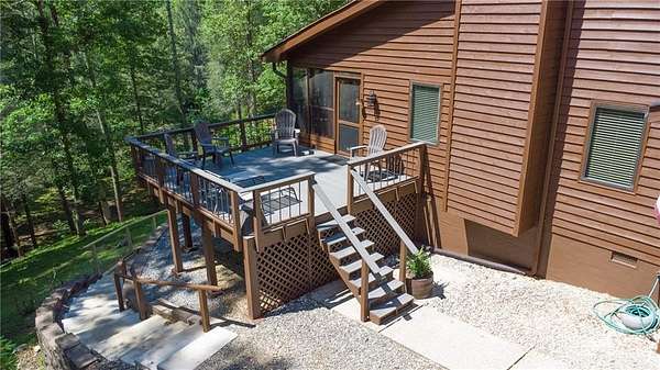 REDUCED TO MOVE!! Nature Lover's Dream with Outdoor Adventure at Your Doorstep. Nestled on extra large 2.49 acre Riverfront lot in the woods yet just steps from the Coosawattee River, allows private access for fishing, kayaking, or quiet reflection by the water. Towering trees and abundant wildlife-including frequent deer visitors-surround the home, creating a truly tranquil setting. This property is a haven for wildlife lovers. You can drop in the creek with canoe/kayak/tube and float right out into the River. Explore the river, hike nearby trails, play in the waterfalls/swimming hole, camping and smores by the firepit, or simply enjoy the views-this home is a basecamp for adventure and relaxation alike. Outdoor Bliss can be found on the expansive screened porch while deer graze nearby and birds sing overhead. It's the ideal spot for morning coffee, evening dinners, or quiet afternoons enjoying the breeze and rustling leaves. The lush setting offers the ultimate in privacy and connection to nature. Whether you're looking for a peaceful full-time residence, multi-generational living, AirBnb or a perfect weekend getaway, this property has it all. - checks all the boxes. The home features bright, airy living spaces that open to nature through large windows. Enjoy cozy evenings indoors and relaxed mornings watching the wildlife from your screened porch. Inside, you'll find warm, inviting spaces filled with natural light. Whether it's gathering in the living area, dining with views of the woods, or retreating to the serene bedrooms, every corner is designed for comfort and peace. With 6 bedrooms, there's ample space for family, guests, or even a home office or two. Two full bathrooms make for comfortable, functional living. Convenient! This riverfront retreat offers privacy without isolation-just a short drive from town for shopping, antiques, boutiques, restaurants, and wineries. Don't miss the chance to own this rare riverside gem. Schedule your private showing today!