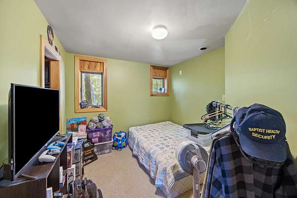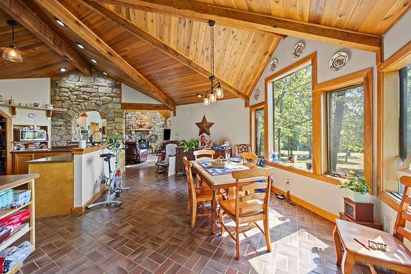 If you're looking for an absolute dream property, look no further! This breathtaking passive solar home is situated on 24.49 surveyed acres and is located at the end of a dead-end road. Inside of the home, you will find tall cathedral ceilings, a stunning stone fireplace, main level primary bedroom with large walk in closet. Enjoy your huge eat in kitchen with a large dining area, a walk-through butler's pantry, and stainless steel appliances. Enjoy your morning coffee on your screened in porch overlooking acres upon acres of woods and wildlife. The basement, which could serve as a separate living quarters, features an additional living/family room, 3 additional bedrooms, and a full bath. Outside, you'll enjoy your large deck with hot tub, a 1,300+ square foot detached garage with 2 garage doors, a second story apartment with a full bathroom, kitchenette, and third story Crow's nest! You also have partial ownership to a stocked pond! With so much wildlife, privacy, and an endless amount of amenities, you definitely do not want to miss out on this beautiful home!