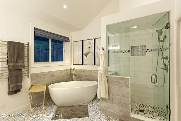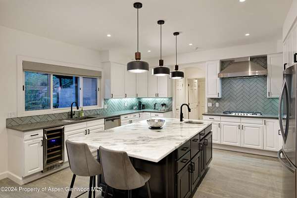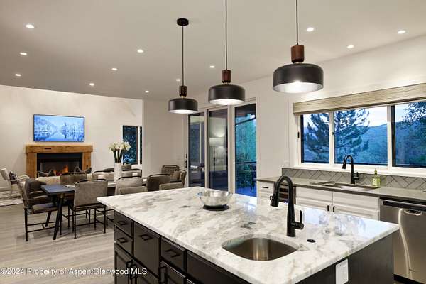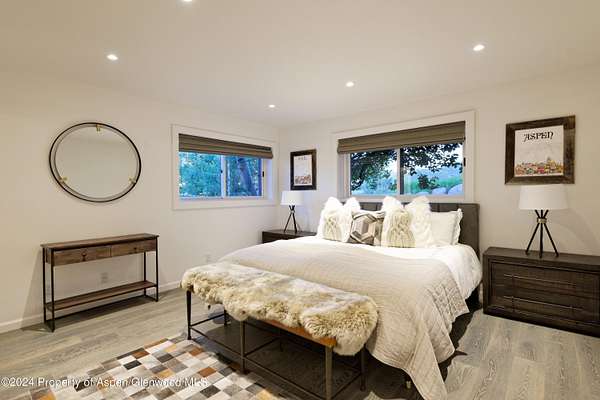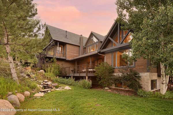 Newly refreshed, five-bedroom mountain contemporary home nestled amongst the Aspen trees and serene mountain stream provides privacy and tranquility in the beautiful Brush Creek Village neighborhood. This home offers an open concept living with gourmet kitchen and sophisticated living areas flowing graciously throughout. Gorgeous sliding glass doors lead out to the outdoor patio and yard are perfect for entertaining. The main living space enjoys mountain views from every window, cozy and chic furnishings, gas fireplace and game table. The second story features an additional lounge and office with a balcony overseeing the main living space adding an abundance of natural light to the home. It also features the primary suite and a guest bedroom. The primary suite offers gas fireplaces, walk-out patio with views and hot tub, beautifully appointed primary bath with dual vanities, soaking tub, and steam shower. The lower level encompasses two spacious en suite guest bedrooms. The fifth bedroom is the perfect suite for any in-law or guest and offers a separate exterior entrance. This suite includes a full kitchen, seating area with loft, washer & dryer, and a fabulous en suite bathroom. This property is situated on four idyllic acres with incredible views and amazing proximity to Aspen and Snowmass. Long Term Asking Rate: $45,000 per month plus utilities. Asking $65,000 per summer and winter individual months.