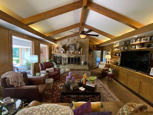 A Home Designed Ahead of Its Time This 4,600-square-foot residence blends timeless elegance with modern sophistication. Step inside to gleaming marble floors that flow into a living room anchored by a striking marble fireplace and a sunlit bay window, with an adjoining formal dining room perfect for entertaining. Vaulted ceilings, detailed crown molding, and exquisite woodwork enhance the home's grandeur. The family room features a second fireplace and full bar, opening seamlessly to a charming brick patio for indoor-outdoor living. The remodeled kitchen offers high-end finishes and abundant workspace. Two main-level bedrooms, including a luxurious primary suite with en suite bath, provide comfort and privacy. Upstairs, two additional bedrooms and a bonus room with a full bath offer flexibility. Additional upgrades include a newer roof, HVAC, and tankless water heater. Schedule your private showing today to experience this exceptional home.