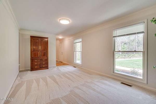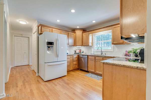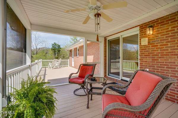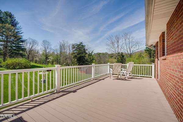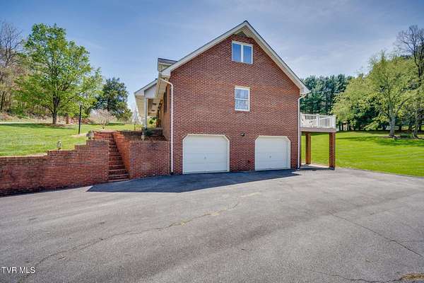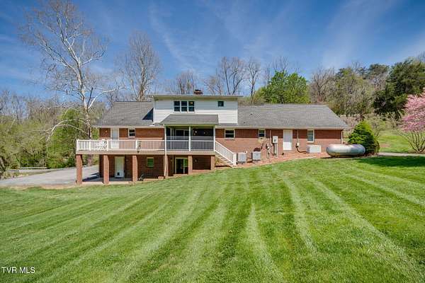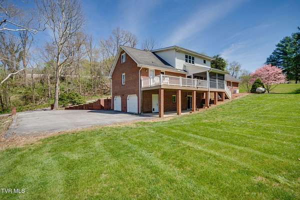 Come take a moment to relax on the back porch of this home and you may never want to leave. The view opens up to over two acres of serene beauty, with a private lawn sloping gracefully toward a gentle creek. Here, every evening concludes with a strikingly beautiful sunset. Built for an engineer, this unique property has thoughtful details, lovely updates, and something for everyone-- a stepless main level with primary suite and laundry, full unfinished walkout basement (with full bath and dog shower!), upper and lower garages, and a second upstairs ensuite that offers great potential for multi-generational living. Four bedrooms and 4.5 baths provide plenty of living space, and the bonus/flex space is perfect for hobbies, crafts, or a quiet retreat. Outside, the huge yard has great space for little ones and animals, and the gorgeous upper ''lot'' has many potential uses. Additional highlights include: - Updated kitchen and baths - New flooring, lighting, dishwasher, stove, microwave - Roof, gutters, gutter guards, kitchen, composite deck, screened-in porch, front walkway, water heater--all installed in last 10 years or so - Solid hardwood floors, quality millwork, smooth ceilings, and fresh neutral paint throughout - Generac generator and 2 HVAC systems - No Homeowners' Association, no subdivision restrictions, and no city taxes! The setting, privacy, and convenience of this property cannot be beat. You will enjoy peace and quiet while being 5 minutes to major shopping, restaurants, schools, Warriors Path State Park, Holston River, and Interstates 81 and 26. Proof of funds or updated prequalification letter must accompany an offer. Make your appointment today!
