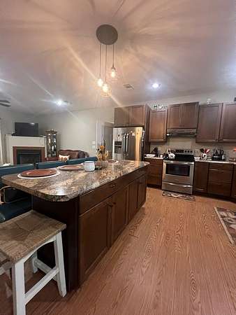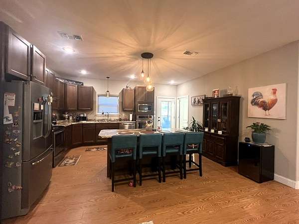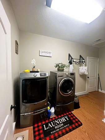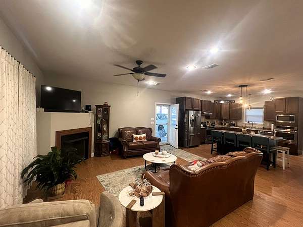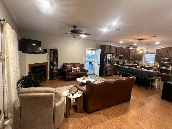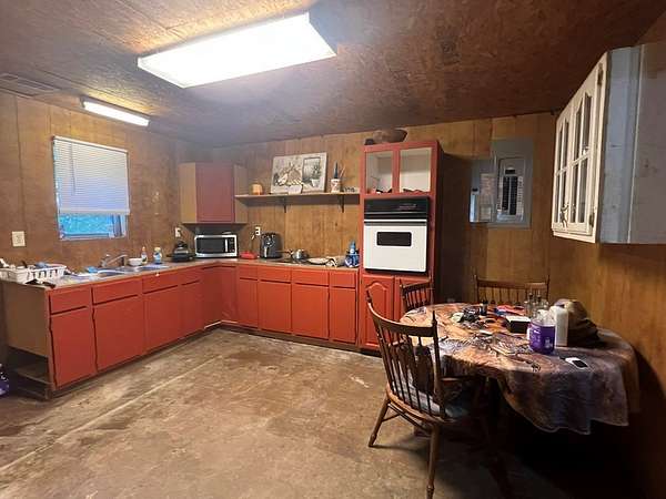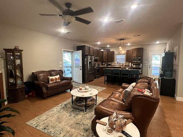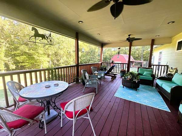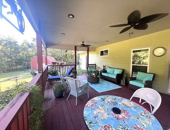 Looking for the peace & tranquillity of the country without paying state income tax? This darling 2/2 sitting on 3.29 Acres has what you're looking for. Located on a quiet cut-de-sac, inside the city limits where there are only 4 homes on the street. A very welcoming country porch makes you feel right at home as you approach the property. Inside the adorable main home, that is as neat as a pin, you'll find a large open kitchen/living space. The corner fireplace is the only gas fixture (natural gas). 9 ft ceilings make the space feel so roomy. The kitchen features an island big enough for several bar stools plus great storage underneath. All stainless steel appliances, including refrigerator, electric range & a single oven, a brand new dishwasher and built-in microwave will all remain! The kitchen opens to the roomy laundry that is also connected to the primary bath. How handy is that! The laundry room houses the water heater & furnace with space for a hanging rack or shelving unit. The primary bath is very spacious with a walk-in shower and 2 walk-in closets. There is an additional walk- closet in the primary bedroom. The room is very nice size with room for a dresser, nightstands, a desk in addition to your bed and a seating bench. The front bedroom is a very nice size room with a walk-in closet. The damaged floors in this room will be repaired asap. There is a nice guest bath close to the extra bedroom & living area. Out-back is a very nice covered deck w/ lots of space for outdoor entertaining. This home has an additional living option with the detached "barn". Heated and cooled, with Central heat & air, 2 bedrooms upstairs, a full bath/combo laundry room downstairs. Spacious kitchen with all of the necessary appliances and living area are also downstairs plus a lean-to for parking your truck or your tractor. This space could house a kid, grandkid or be used for your storing farm equipment. The yard has a small fenced area to contain pets or kids.