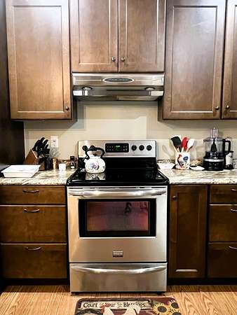 - Dishwasher, Electric Cooktop, Electric Oven, Electric Range, Exhaust Fan, Microwave, Refrigerator