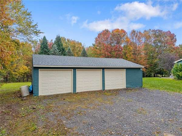 Tucked away in the peaceful woods, this beautifully maintained 3-bedroom, 2-bath ranch offers the perfect blend of privacy, comfort, and space. Sitting on 10 ACRES, this property provides the ideal retreat for nature lovers while still offering all the modern conveniences of home. Step inside this freshly painted home to find a welcoming open floor plan featuring a spacious living area and breakfast bar. The kitchen offers plenty of cabinetry and counter space, flowing easily into the dining area and living room for easy entertaining. Three comfortable bedrooms include a primary suite with a private bath. The finished basement is perfect for extra living space, home gym, or guest area. Outside, enjoy the beauty of nature from your back patio, ideal for morning coffee or evening gatherings. The oversized three-car garage provides ample room for vehicles, tools, and recreational equipment. Experience the comfort of one-level living surrounded by complete privacy! FINAL AND BEST DUE MONDAY 10/20/25 AT 2PM