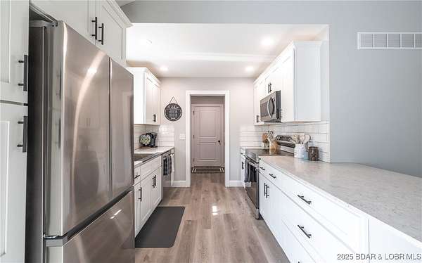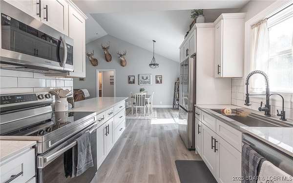 Ever dream of finding a home that's truly move-in ready? Built in 2023 on 5.22 acres, this 3-bedroom, 2-bath beauty combines modern design with peaceful country living. Inside, you're greeted by soaring 12+ ft vaulted ceilings, wide 5 1/4" baseboard trim, and stylish plank flooring flowing through the open layout. The kitchen shines with crisp white shaker cabinets, subway tile backsplash, stainless appliances, and sleek quartz countertops-a true gathering spot for family and friends. The master suite offers a private retreat with a spacious walk-in closet and spa-inspired bath featuring dual vanities and glass shower doors. Two bedrooms provide room for family, guests, or office space. Thoughtful upgrades include blackout shades, a fully encapsulated crawl space with storage, a Water Boss Pro Plus 380 softener, and a 3-stage reverse osmosis system for fresh drinking water. Enjoy coffee on the covered porch, evenings on the freshly stained deck, or a summer dip in the 16-ft pool. The sheetrocked garage could easily convert to more living space, adding flexibility. With a circle drive and garden shed, this home checks all the boxes.