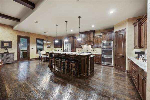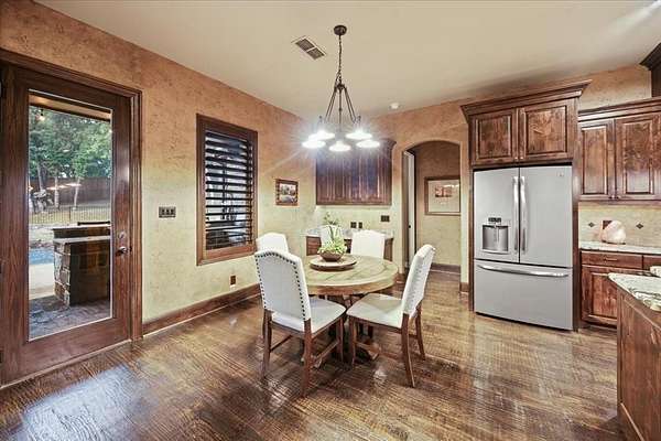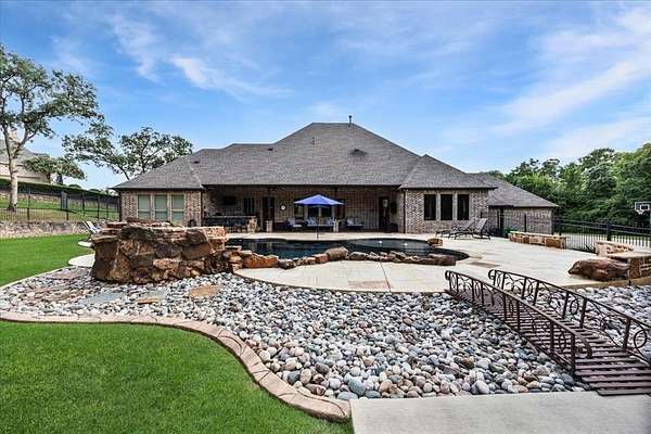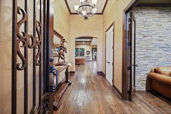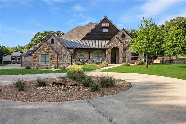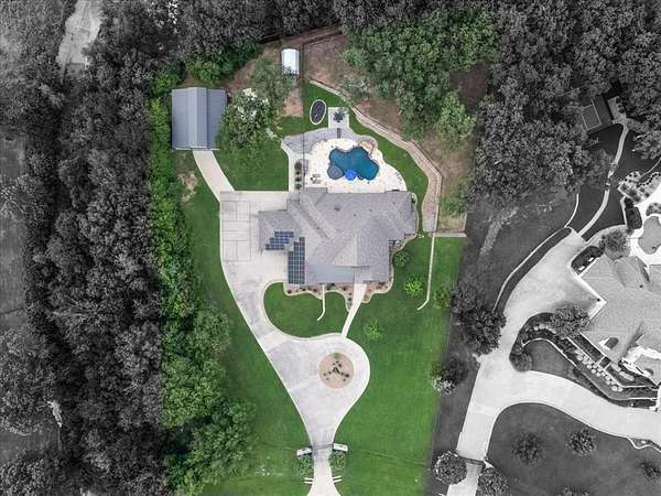 Welcome to Regency Oaks, one of the most sought-after neighborhoods in Denton. This is truly a one-of-a-kind custom home built by Design Classics and has amazing features around every corner and even some hidden gems if you look really close. The home sits on a sprawling 2.2 Acres accessible only through its own-Security Gate. Meandering around the property you will find an abundance of areas to explore, from the large, insulated shop which was also custom built and designed. The shop has electricity epoxy floors and windows for natural lighting. Outside the shop is what we refer to as the Justice League firepit with ample space for roasting marshmallows. The back yard oasis has a custom 10 ft deep salt pool with a grotto, many outdoor seating areas and a well-equipped outdoor kitchen. If you adventure further out on the property you will find yourself under an umbrella of massive oaks remanence of the cross timbers forest that spanned Denton County and beyond. Now venture inside to experience the beauty that awaits, from the ever-flowing hand scrapped wood floors, oversized wood beams that adorn the living room ceiling, to the oversized home office if working from home is more your speed. The home was designed with a Primary Suite which is amazing, I will let you find out for yourself, but the house also was designed with a second Primary suite, you decide what lucky quest get to enjoy the extravagances it has to offer. The home was also designed with a several energy efficient features, from Solar Power, encapsulated foam insulation, tankless water heaters and ceiling fans throughout. In this limited space Words just cannot express all the homes amazing features. You owe it to yourself to see it in person.