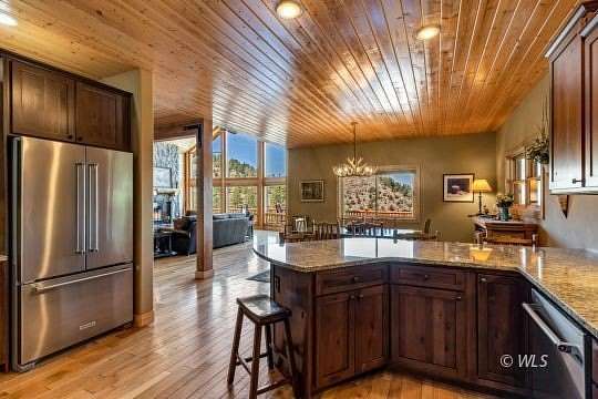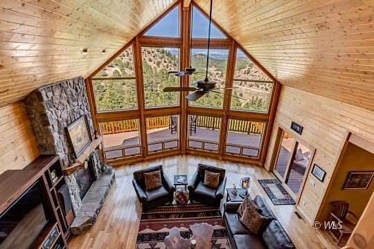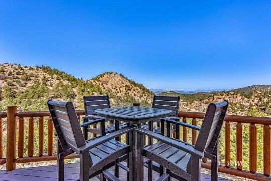 Exceptional opportunity to own a BEAUTIFULLY crafted log-sided home set on 42 wooded acres with great views of the Sangre de Cristo Mountains. This two-story, 4,300 sq ft home offers 4 spacious bedrooms, 3.5 baths, and an open floor plan designed for comfort and functionality. The main-level primary suite features direct access to a large deck and hot tub, perfect for enjoying peaceful mountain mornings. The home is mostly furnished for a seamless move-in experience. The open-concept kitchen is equipped with brand-new, high-performance appliances and flows effortlessly into the expansive great room, which features a 40,000 BTU gas fireplace and panoramic mountain views. Upstairs, a loft with a bar and pool table adds a great entertainment space, while each second-story bedroom includes its own en suite bath for added privacy. Additional highlights include a new stellar home office dorned in black walnut with a built-in bookshelf, a 4th bedroom, a workout room and climate-controlled storage. Outside, enjoy an outdoor kitchen complete with granite countertops and a built-in pellet smoker/grill, located just off the oversized 3-car garage. This Property is a Dream Come True!