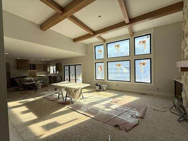 2026 PARADE HOME (Move-in June 16 or after) Stunning 2-story Craftsman style home on a wooded, 1.5 acre site w/ over 3,600 finished sq ft. This eye-catching home features a dramatic great room with gas fireplace accented by a soaring stone wall, built-in entertainment center, ceiling beams and designer finishes throughout. Quartz kitchen with center island, range hood, huge walk-in pantry w/ an abundance of storage, covered backporch, w/ maintenance-free decking and steps overlooking the woods. Spacious mudroom with built-ins, walk-in closet, and laundry with a fantastic and handy dog wash. Main-floor office offers cozy electric fireplace and custom octagonal wall detail. Luxurious primary suite features stone accent wall, spa-like oversized tiled shower, heated towel bar, and large walk-in closet. Finished walkout lower level includes kitchenette, media space, safe room/gun safe, 5th bedroom, and 3rd full bath. 3-stall garage and Black Andersen windows. LANDSCAPING package w/ sprinkling included w/ this custom show piece.