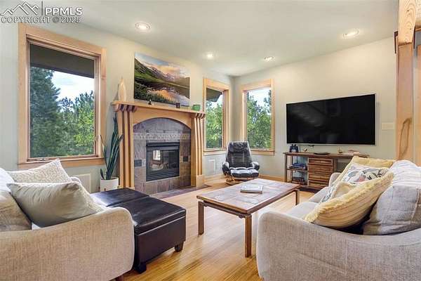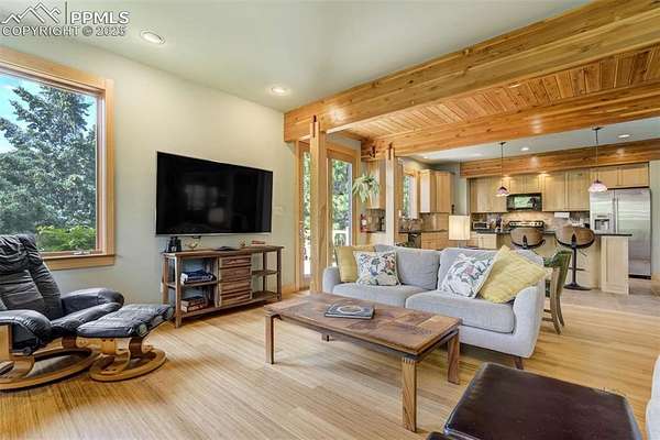 Experience life in Colorado in an extraordinary manner. This very special property offers over 2 acres in the woods with a babbling creek you can hear from your primary suite. It was built by a local builder Tom Day with the renderings of artist Sarah Susanka, author, architect and visionary. Some unique features include milled alder trim and doors, custom tile work, bamboo flooring, custom glass transoms..... and then add a gourmet kitchen with large island, slab granite, updated appliances, custom birch cabinets and large walk-in pantry. Family gatherings are easy with its "open" concept to include the butler's pantry, large dining room and large island, along with a cozy fireplace nearby. The bonus suite with its separate entrance works well for overnight guests or long term family visits. The mechanics of this home include radiant hot water heat, on-demand hot water, whole house fan, whole house speaker system, and spearate hardwired internet for each bedroom. You will appreciate a wet bar with sink and small refrigerator in the basement, an office OR bedroom on the main level, many wonderful built-ins and central vac with 3 hoses. It cannot be stressed enough the uniqueness of the beautiful custom woodwork and diversity in products used for the interior design. The closeness to nature is unparalled. Walk down the road to Palmer Lake Reservoir trailhead for a daily hike or walk 5 minutes to town for a morning coffee or venture down to the creek at the base of your property to find your very own private sitting area for reading, comtemplating life or a nap! The driveway has been newly resealed with ample parking in the back (up to 14 cars), stucco was refreshed and painted, and new privacy fencing installed. There are many possibilities here -raise your family in the woods in a small town, make it an escape from the big city, or it has been very successfully used as a short term rental if that is something you desire.