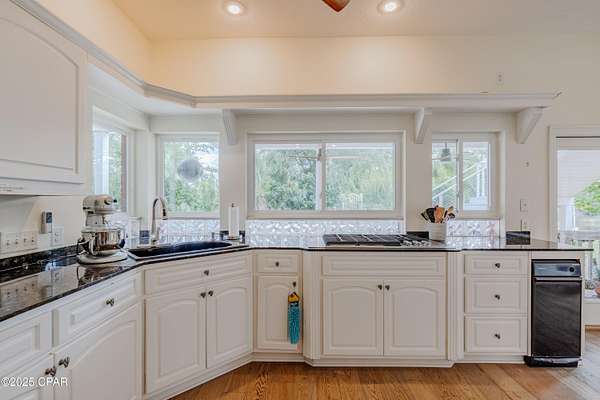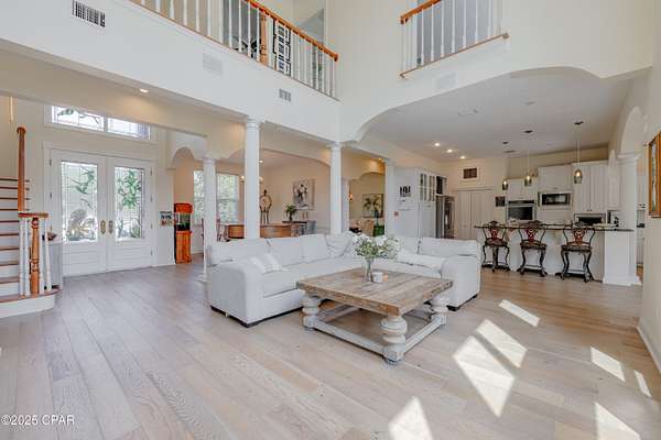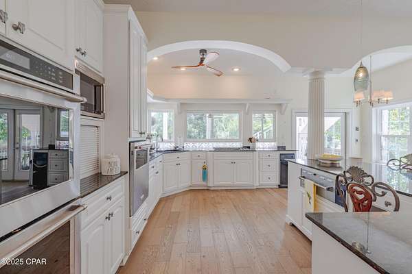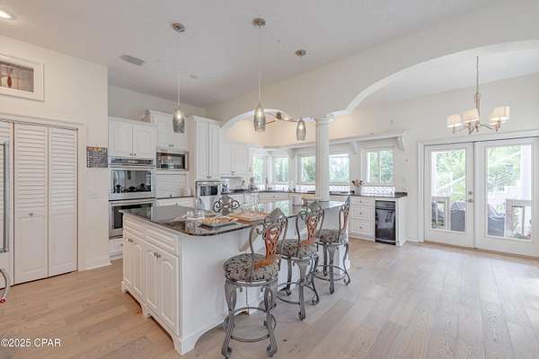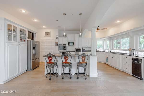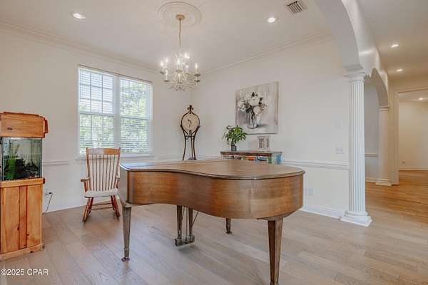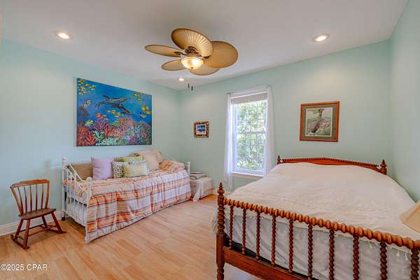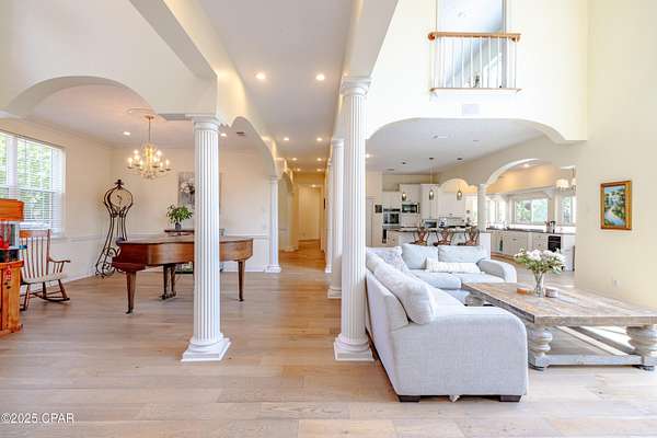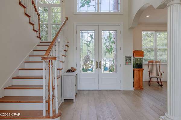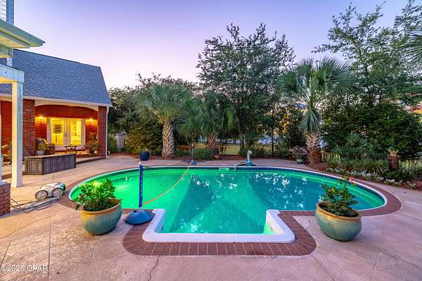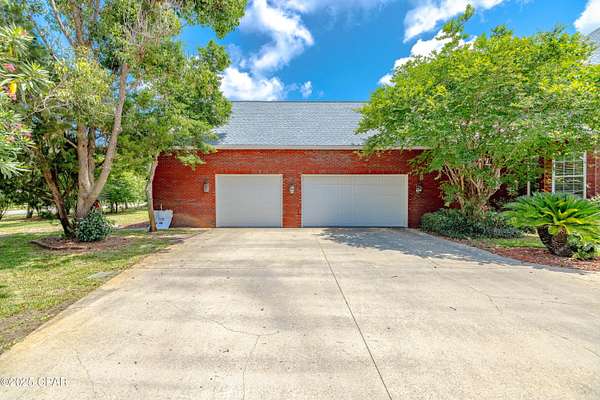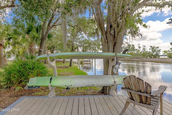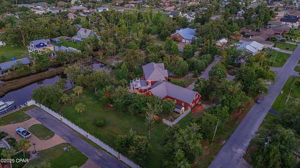 OWNER FINANCING AVAILABLE!! This beautiful 2 story WATERFRONT ESTATE has it all! Custom built in Lynn Haven, FL and tucked away on an oversized 2 acre corner lot in a very private setting and quiet neighborhood. Beautifully landscaped with a fish stocked pond, mature trees and an abundance of flowers with something blooming in all seasons. A boater's dream with deepwater access to North Bay and the Gulf from the newly replaced big dock with boat lift! 300 ft water front! Open floor plan on 5,500 sqft with 5 BR's and 5.5 baths. Downstairs you'll find the master bedroom and an additional bedroom with full bath and private entry to the pool area what is currently used as a media room and would make a perfect MIL suite or office. Upstairs are 3 more bedrooms, each with own bathroom. The house has beautiful views of the bay and yard from various rooms. The chef's kitchen with all new appliances including double ovens, Viking warming drawer and gas stove top overlooks the fenced in pool area. Vaulted ceilings, stained glass windows/doors, custom made gas fireplace! The large recreation room upstairs overlooking the bay has a wet bar and leads to the sun deck. Three more bonus rooms upstairs totaling over 800 sq ft - use as a craft room, play room, office or fitness area. Walk-in 110 sq ft attic with endless storage! The oversized 3 + car garage is every car collector's dream! The house has solid brick exterior with thick walls and 2 x 6 framing. The roof is NEWLY replaced in 2023. The house has 2 NEW HVAC units, 3 NEW hot water heaters including 1 tankless water heater and 2 electric water heaters and NEW central vacuum, an oversized laundry room with extra storage, his and hers walk-in closets in the master bedroom, and a long circular driveway with extra parking. The pool has a new liner plus filter system and takes minimal maintenance. The fenced-in garden area is perfect for a small vegetable garden with raised beds already in place and includes a garden shed. The huge boat dock is BRAND NEW 2024 replaced with high end composite decking and has an outdoor shower and a fish cleaning station. All windows, most doors and floors are new as well. Irrigation in the whole yard. There is a custom made treehouse with a zipline. Too many amenities to list. OWNER FINANCING AVAILABLE!!! Call for your showing today!