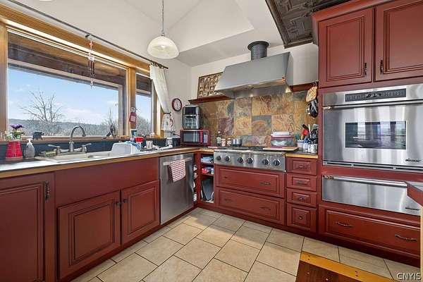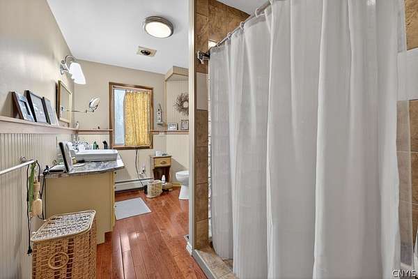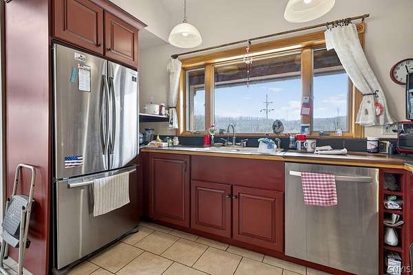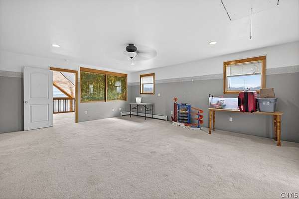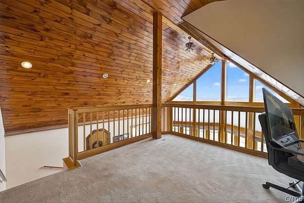 Welcome to 4000 Bishop Hill Road. A beautiful home with a commanding view of the village and rolling hills of Marcellus. The house is located just outside the village and nearby Baltimore Woods nature preserve. The large lot has room for additional out buildings and offers privacy for outside activities. A large deck awaits company for entertaining and to enjoy the beautiful view. The living room has natural woodwork, cathedral ceiling, natural wood finished floor and a stunning fireplace for warmth. Kitchen features stainless steel appliances and a breakfast bar situated perfectly to enjoy the view.The large second floor bedroom has its own full bath ,large closets and a top landing for addituonal use with a spetacular view over the north side of the proprty through the many windows that provide natural ight and sunshine. The roof was replaced in 2017 by the trusted local Vanderhoof Roofing company and has a fully transferable warranty. The lower floor living area features 2 sliding glass doors for walkout to the north facing backyard. It also features a partial kitchen,bedroom, livingroom and its own full bathroom.