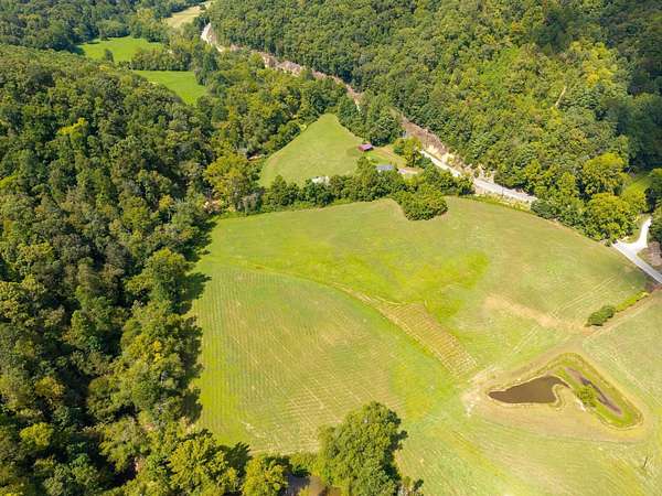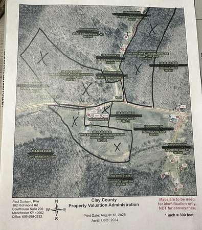 This property offers multiple options due to acreage being on both sides of Hwy 1482- - 2 of the parcels are covered in trees and hilly and would make good recreation/ hunting properties and with some excavating work, could be used for residential as well. The 2 parcels on other side of the road are mostly cleared and the large field areas are currently being used for hay. There are 3 hay / storage sheds on property and also an old barn. There is a small creek that runs in the back of the property but it's very small. One of the neighbors is currently cutting the hay as an agreement to keep the fields cut but they could also be used for some livestock. The property has NOT been surveyed and the information on acreage was taken from the county PVA - -shading for aerial photos are only for reference and can't be used as official property lines- -buyer is responsible to verify acreage and property lines as part of the purchase.