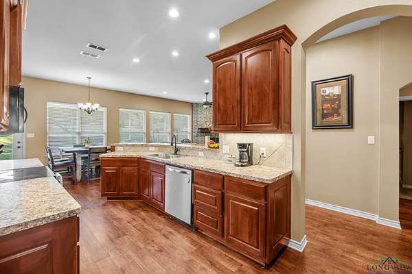 Welcome to your new home in the highly sought-after Spring Hill ISD! This beautifully maintained 4-bedroom, 2-bath brick home offers the perfect blend of comfort, privacy, and functionality nestled on 1.88 peaceful acres at the end of a quiet cul-de-sac. Step inside to an inviting open layout filled with natural light, warm neutral tones, and stylish wood-look flooring throughout the main living areas. The spacious living room centers around a cozy brick fireplace, creating a welcoming space to gather with family or unwind after a long day. The kitchen offers abundant cabinetry, a breakfast bar for casual dining, and an easy flow into the dining and living areas, perfect for entertaining or everyday life. The split-bedroom design provides privacy and flexibility, featuring a generous primary suite complete with a relaxing ensuite bath and large walk-in closet, while three additional bedrooms offer comfort for guests, family, or a home office setup. Outside, the property shines with features designed for both lifestyle and convenience. A 15x30 RV port with full hookups, a 30x40 insulated shop perfect for hobbies or extra storage, and plenty of open yard space for gardening, outdoor gatherings, or simply enjoying the peace and quiet. Experience the best of country living with city convenience, located just minutes from top-rated schools, shopping, and dining in Longview, TX. This one truly has it all, space, comfort, and that special feeling of home.