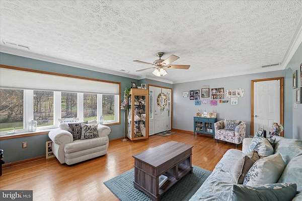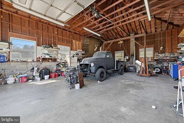 Welcome to 4001 Bentonville Rd in Bentonville, VA—where comfort, space, and thoughtful upgrades come together in a beautiful brick ranch home set on 5 scenic acres with mountain views and a spring-fed pond. This well-maintained home offers 4 bedrooms (3 bedroom-6 person max occupancy, conventional septic) and 2 full bathrooms, with a layout designed for both everyday living and flexibility. A thoughtfully designed addition creates a split-bedroom floor plan, ideal for added privacy. The addition is equipped with efficient mini-split systems for year-round comfort, while the main home is serviced by an HVAC system that was replaced approximately 1.5 years ago and includes a U/V light filtration feature. The main level features gleaming hardwood floors and a welcoming living room centered around a classic brick fireplace with hearth, mantle, and charming sconce lighting. The large eat-in galley kitchen offers great functionality with newer appliances, including a refrigerator with the large glass front, cooktop, and microwave—all less than 4 years old. The primary bedroom offers 2 large cedar lined closets. Main-level bathroom was recently renovated (approximately 2 years ago) showcasing stylish tile flooring, a beautifully tiled shower with built-in bench seating, and a double vanity. Downstairs, the finished basement adds valuable living space and includes a second full bathroom. This property is packed with additional upgrades for comfort and peace of mind, including a whole-house water filtration system with U/V light and softener through Water Works, a radon mitigation system, Generac generator, and a newer roof on both the home and garage (approximately 5 years old). Car enthusiasts, hobbyists, or those needing extra workspace will appreciate the impressive detached garage—approximately 40’x30’ plus additional storage space. It features a 13’ tall door, wood stove, three 220-V outlets, and an exterior RV plug. A 14’ lift can convey with an acceptable offer. Enjoy the beauty of nature right from your own front yard, with open acreage, mountain views, and a peaceful pond fed by a natural spring. This property offers the perfect blend of rural charm and modern convenience—ready to welcome you home
