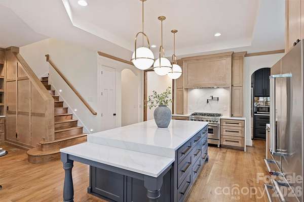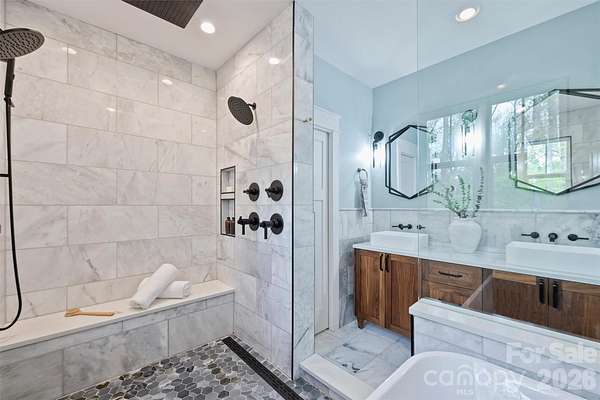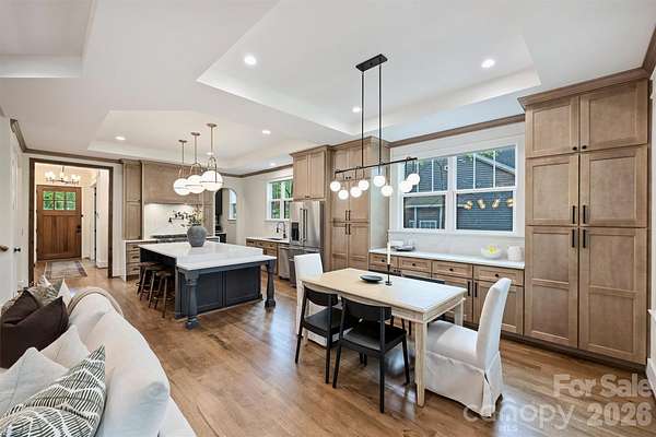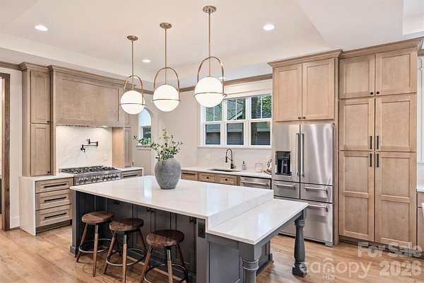 Experience a rare fusion of expansive privacy and modern luxury situated on an unprecedented 2.5+ ACRES in South Charlotte. Inside you will find an open floor plan defined by impeccable craftsmanship and high-end custom finishes throughout. The main level is anchored by stunning 1/4 sawn white oak hardwoods and extensive custom carpentry that adds a layer of timeless texture to every room. The chef's kitchen is a showstopper, featuring an oversized custom island perfect for entertaining. Premium finishes and professional-grade appliances throughout with a seamless flow into the living areas full of natural light. Designed for modern flexibility, this property includes a sought-after Junior Primary Suite on the main level in addition to a Second Floor Primary Suite that is a true sanctuary featuring a freestanding soaking tub and a rainfall shower. Outdoor living is unmatched boasting a serene covered front porch and sprawling rear deck perfect for entertaining. Experience the impossible: massive acreage, new construction, and a prime South Charlotte location. Nestled in the tranquil Carmel Forest neighborhood and situated just moments from Carmel Country Club, this property offers a level of privacy that is simply unheard of for this location. This isn't just a home; it is your own personal oasis, providing a serene, escape while remaining minutes from the city's finest dining, shopping, and amenities.