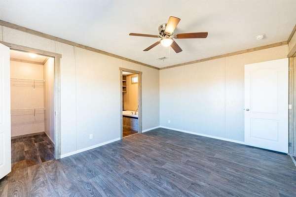 Incredible opportunity to lease a fully updated mobile home sitting on 5 acres with ponds. This home features 3 bedrooms, 2 full bathrooms, spacious living room, new laminate flooring through out, updated kitchen with stainless steel appliances, farm sink, large kitchen island, utility room, oversized primary bedroom with ensuite bathroom that features a soaker tub and large walk in shower. Relax outside under your large covered front patio over looking your ponds and the beautiful sunsets. A MUST SEE!