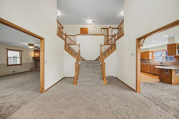 Step into a home where history, craftsmanship, and timeless character of this 5 bedroom, 3 1/2 bath residence offers a rare blend of historic charm and modern comfort. From the moment you arrive, the inviting wraparound porch sets the tone, perfect for quiet mornings or relaxing evenings. Inside, a stunning dual staircase welcomes you, creating an unforgettable first impression and anchoring the home's classic design. Throughout the home, you'll discover thoughtfully preserved details that tell a story. Most notably, the handcrafted living room mantle was created from wood sourced from the original barn that stood on the property in 1889. These timeless elements are seamlessly woven into the home, adding warmth and authenticity in every room. The kitchen is both functional and beautiful, featuring quality cabinetry, granite countertops, and ample space for gathering and entertaining. Upstairs, the spacious bedrooms offer comfort and charm. The basement presents a massive, clean, open space with egress windows already in place, offering endless potential to finish and customize to your needs. What truly sets this property apart is the incredible mother-in-law suite, tucked privately behind the home. More like a second residence than a suite, it includes a full kitchen, living room, bedroom, bathroom, and its own laundry room, ideal for extended family, guests, or even rental income opportunities. Additional features include a 2 car attached garage, a 2 car detached garage with durable cement flooring, and a beautifully restored carriage house dating back to the original 1889 property, which adds character and functionality. The meticulously maintained grounds provide a serene, picturesque setting that perfectly complements the home's historic roots. This is more than just a home, it's a legacy property filled with stories, charm, and endless possibilities. Schedule your private showing today and experience its unmatched beauty for yourself.