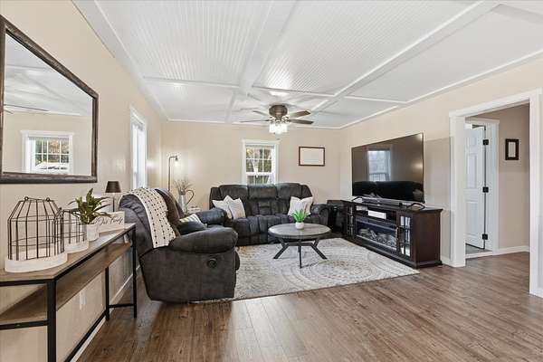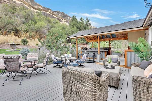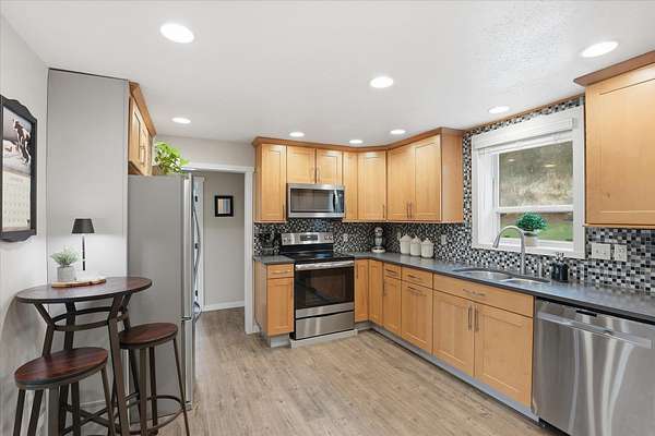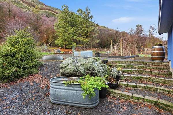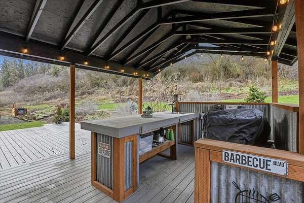 Welcome to your dream home! This updated property is perfect for those looking to relax, entertain or have a hobby farm. Situated on 2 acres in the country just 2 miles from town, conveniently close to the schools, golfing and parks. Remodeled in 2025 to include a new roof, siding, vinyl windows and a new welcoming front porch. Inside you'll find a new coiffured panel ceiling, new LVP flooring, a new built-in hutch, walk-in pantry, new plumbing & electrical, also new is an oversized one car garage with an insulated door. Step outside to a private oasis with a stunning covered deck and outdoor kitchen, equipped with water and power perfect for year round grilling, an above ground pool with deck, mature landscaping, fruit trees, raised garden beds, berry plants, and a cozy brick fire pit ideal for enjoying starlit evenings. Other features: RV parking hook up, a 24 x 24 shop with its own electrical panel, a 24x26 storage shed and a 30 x 30 barn making this property a real show stopper that checks all the boxes!