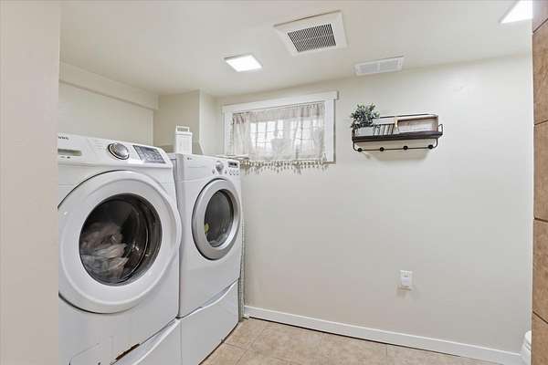 - Dishwasher, Disposal, Dryer, Free-Standing Range, Hard Surface Counters, Microwave, Refrigerator, Washer