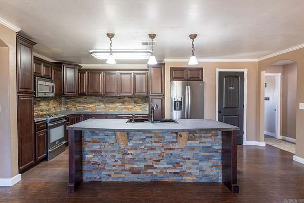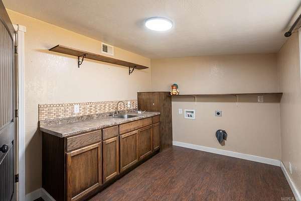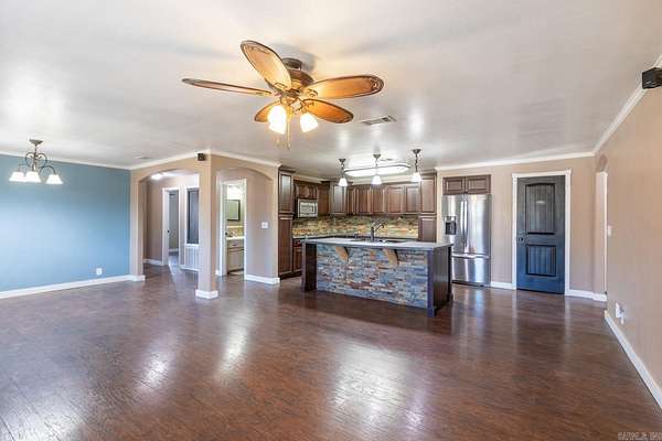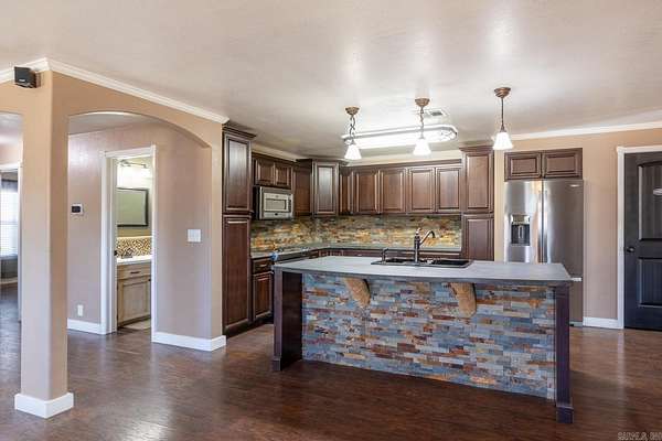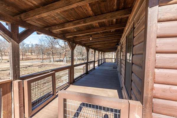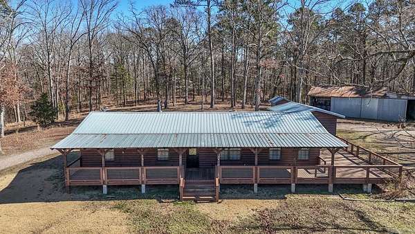 Move-in ready ranch-style home on 4.6 acres m/l in Mena, AR, just minutes from Talimena State Park, Ouachita National Forest, and ATV trails. This well-maintained 3 bedroom, 2 bath home features a metal roof, log wood siding, open-concept floor plan, and large living room. The functional kitchen offers abundant cabinets and pantry storage. Enjoy a covered front porch that wraps around to the south and a large back patio and a firepit. Patio doors lead from the primary bedroom to south porch. Bonus room ideal for office or craft space. Oversized laundry/mud room and spacious bedrooms and closets. Property includes large shop building, rural water plus private well option, this property suitable for primary residence short-term rental, or vacation retreat. Excellent opportunity for those searching for home with acreage in Mena, Arkansas property near National Forest, or investment Airbnb near Talimena Scenic Drive.