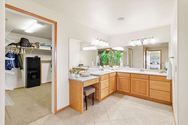 - Ceiling Fan(s), Kitchen Island, Pantry, Primary Downstairs, Shower/Tub Combo, Solid Surface Counters, Vaulted Ceiling(s), Walk-In Closet(s), Wired For Sound