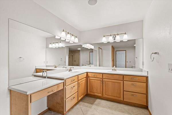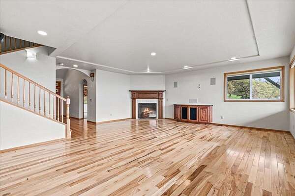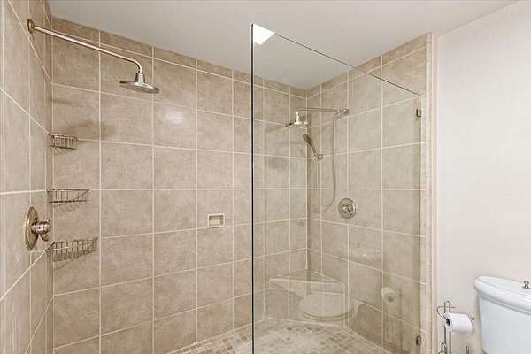 - Breakfast Bar, Ceiling Fan(s), Double Vanity, Fiberglass Stall Shower, Kitchen Island, Linen Closet, Open Floorplan, Pantry, Primary Downstairs, Shower/Tub Combo, Solid Surface Counters, Stone Counters, Tile Shower, Vaulted Ceiling(s), Walk-In Closet(s), Wired For Sound