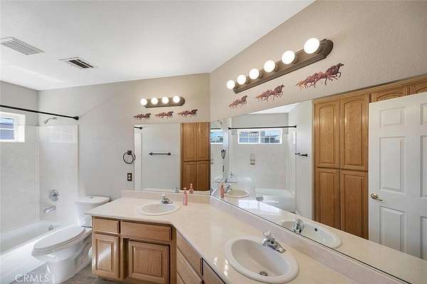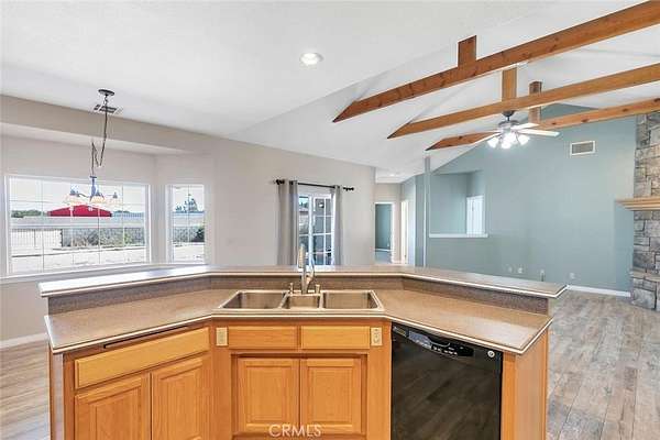 This turnkey West Palmdale estate offers exceptional space, functionality, and versatility and will not last long. The residence spans approximately 3,200 square feet and features four bedrooms and three bathrooms, with three bedrooms conveniently located on the main level and one bedroom upstairs accompanied by a spacious loft, ideal for a home office, media room, or additional living space. The home showcases numerous high-quality features, including hardwood kitchen cabinetry, wood-look tile flooring, exposed wood beams, recessed lighting, and a dedicated laundry room with additional storage cabinetry. The generously sized bedrooms are equipped with built-in closet organizers, while the primary suite offers a spa-like bathroom with a soaking tub and relaxing window views. Situated on 2.5 acres, the property is perfectly suited for horse enthusiasts, offering a 6-stall barn, hay storage area, and a tack room. Additionally, the property includes a permitted 4,000-square-foot insulated building featuring three 14-foot RV doors, ideal for parking multiple RVs, operating a business, or storing recreational vehicles and equipment. The 4,000-square-foot warehouse will be included in the listed price.