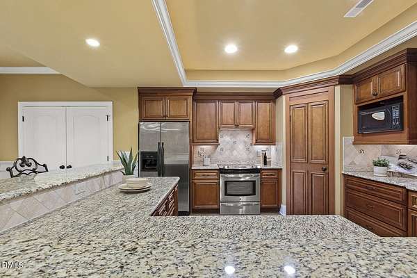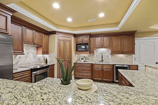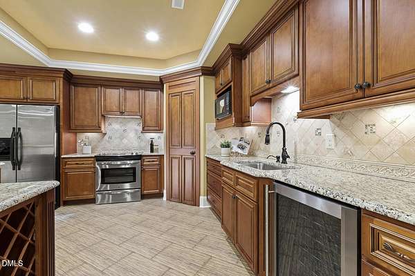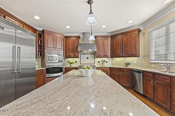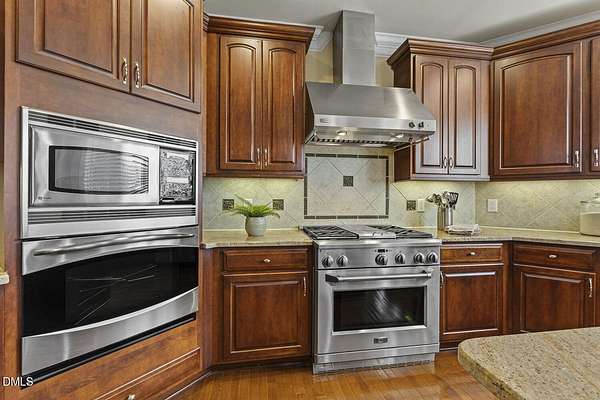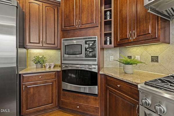 - Built-In Refrigerator, Dishwasher, Disposal, Free-Standing Gas Range, Gas Water Heater, Microwave, Oven, Range Hood, Stainless Steel Appliance(s), Wall Oven, Water Softener, Water Softener Owned, Wine Refrigerator