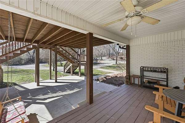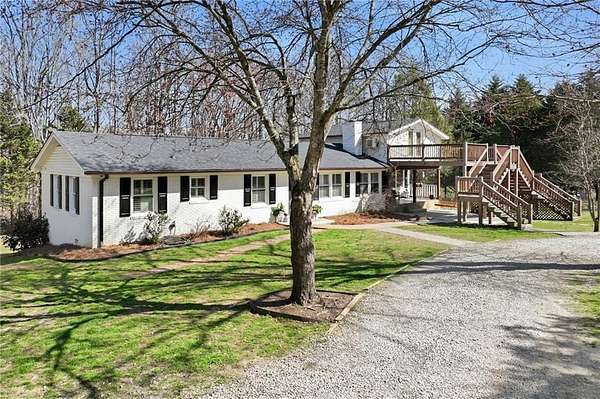Private coutryside retreat with space for everyone! Welcome to this spacious brick ranch situated on 2.79 usable acres, offering privacy, flexibility and room to live the lifestyle you've been dreaming of. Tucked away down a private gravel road, you'll enter through the gate and find the home peacefully positioned on the left - creating a quiet homestead that still keeps you close to town. Originally built as a brick ranch and thoughtfully expanded over the years with 2 attached additions,this home provides an abundance of living space both inside and out. Inside you'll enjoy open living areas with views to the kitchen and dining room, a cozy fireplace, hardwood floors and a large main-floor laundry room. The finished basement adds even more flexibiltiy with an additional bedroom and kitchenette, perfect for guests, extended family or simply additional living space. The first addition features a spacious main level area with an upper-level bedroom, along with a covered rocking chair porch and walkout wood deck - ideal spots to relax and take in the peaceful surroundings. The second addition is a versatile bonus space and often enjoyed as a man cave, workshop, office, gym or hobby area, offering endless possibilities for work, storage or any type of recreation. Step outside and you'll find the property really shines. The acreage offers privacy, peacefulness and plenty of room for outdoor living, parking cars, boats, trailer or RV, and ample space to enjoy mother nature. The multiple outdoor buildings include: pavillion, perfect for cookouts and gatherings with family and friends, a chicken house, detached open 3-car garage, garden areas, fruit trees and abundant garden space for vegetables or flowers. Whether you enjoy gardening, entertaining or simply relaxing in a quiet country setting, this property allows you to spend as much time outdoors as indoors. Conveniently located just 15 min from Gainesville, approx 20 mins to Dahlonega via Hwy 60 North and 20 mins to Dawsonville via Price Rd. This unique property combines space, privacy and versatility - perfect for multi-family generations, extended families, gardeners, hobbyists, collectors or anyone opposed to HOA neighborhoods.