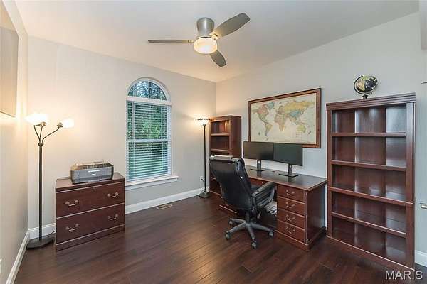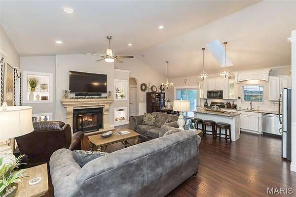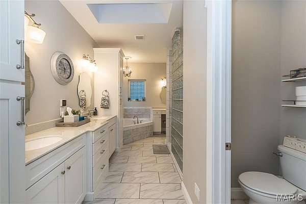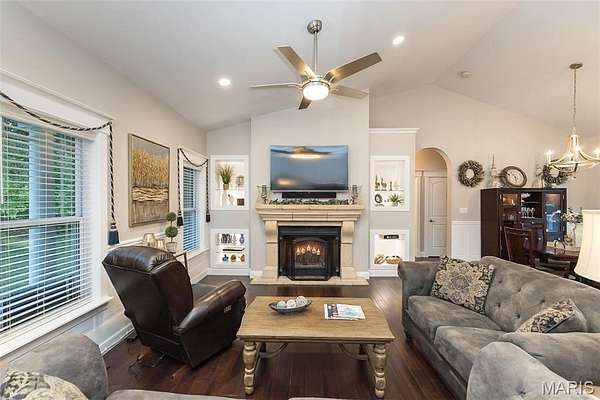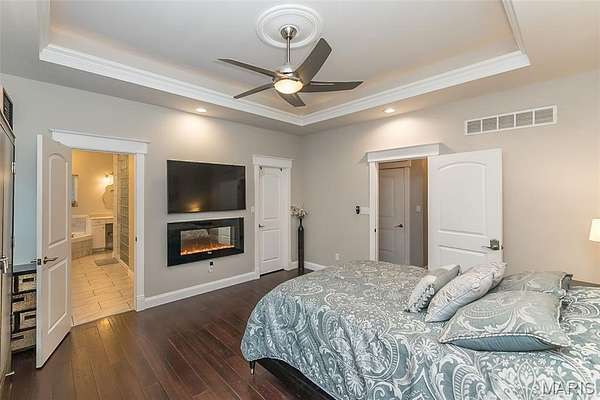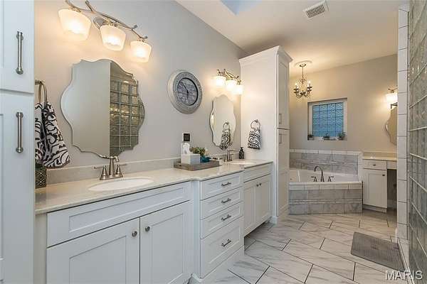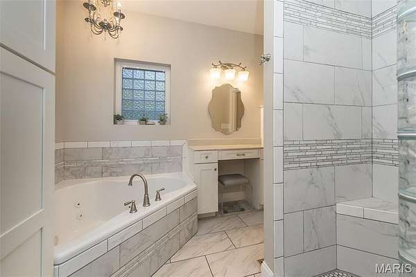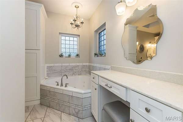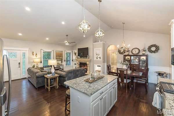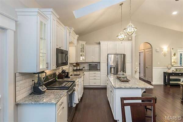 - Bookcases, Breakfast Bar, Breakfast Room, Ceiling Fan(s), Custom Cabinetry, Eat-In Kitchen, Entrance Foyer, Granite Counters, Kitchen Island, Open Floorplan, Recessed Lighting, Separate Shower, Solid Surface Countertop(s), Tray Ceiling(s), Tub, Vaulted Ceiling(s), Walk-In Closet(s), Whirlpool