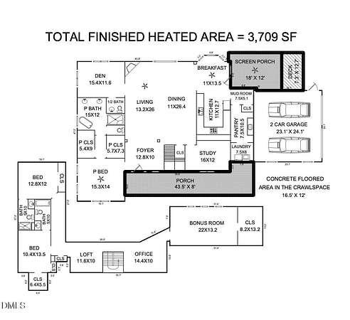 - Bathroom x 4, Bedroom x 3, Den, Dining Room, Laundry Room x 2