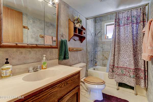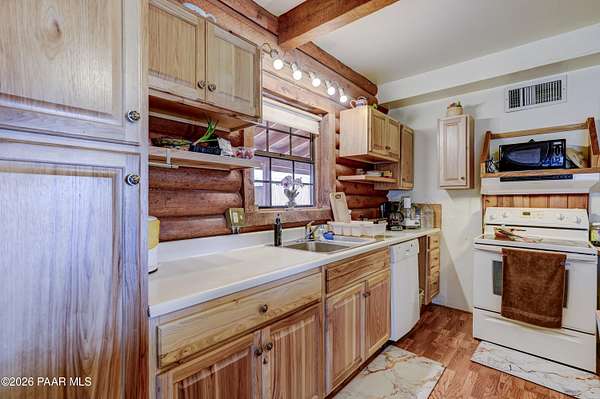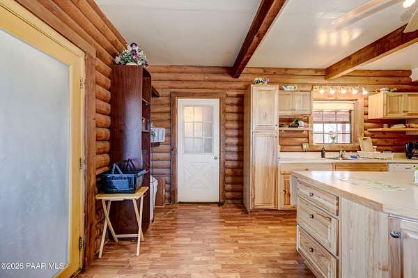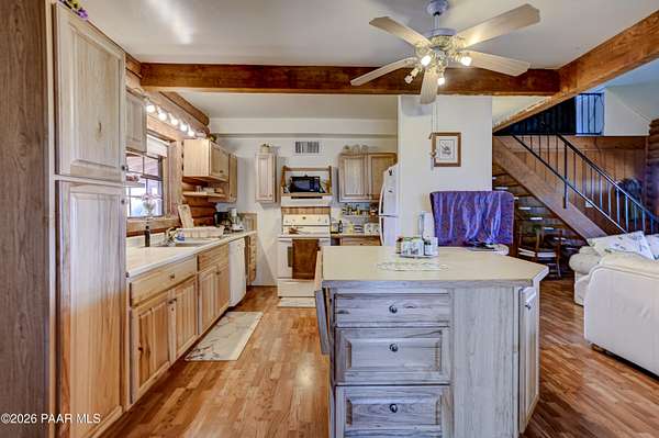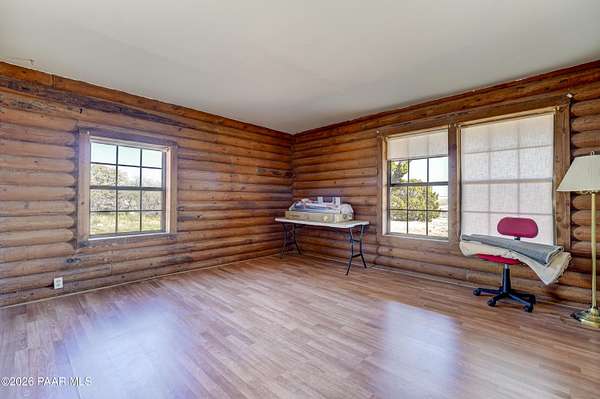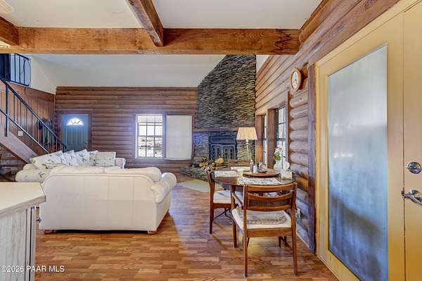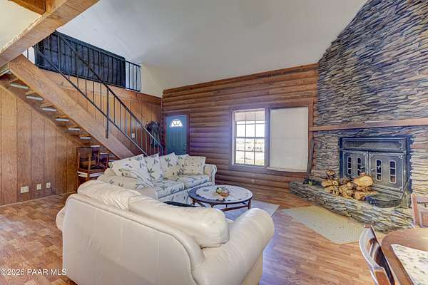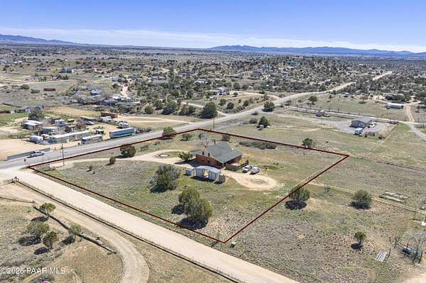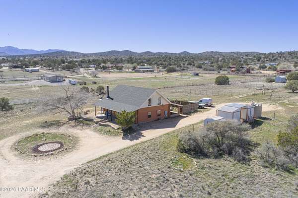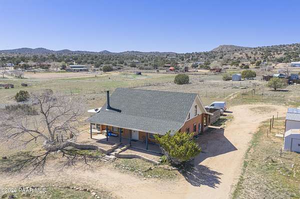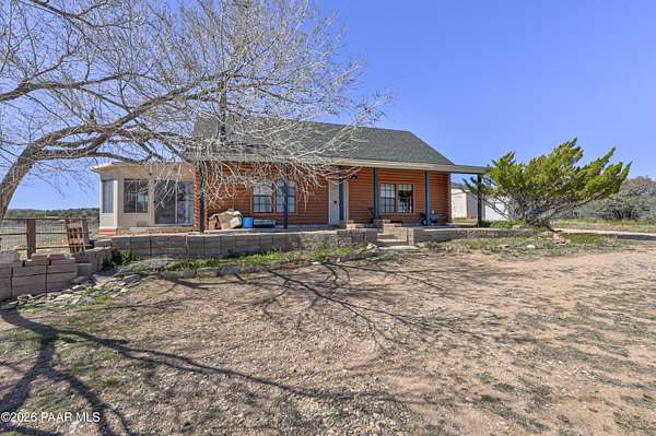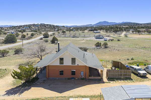 This beautifully built cabin home sits in the heart of north Chino Valley with stunning direct views of San Francisco Peaks, amazing sunsets and peaceful rustic surroundings make this homestead property a Chino Valley hidden gem. With a huge master bedroom and new ROOF 2026 and upstairs carpeting make this homestead a perfect space for you and your farm animals. Together with its new hot water tank, upgraded septic system and old school shale built wood burning fireplace will keep the hearth and home warm and comfortable. Pumphouse has also been upgraded to handle the 2500 gallon water storage tank capacity. This 2.34 acre parcel with an amazing and efficient cabin home is truly a Chino Valley rural homestead just waiting for you and your critters to move in!
